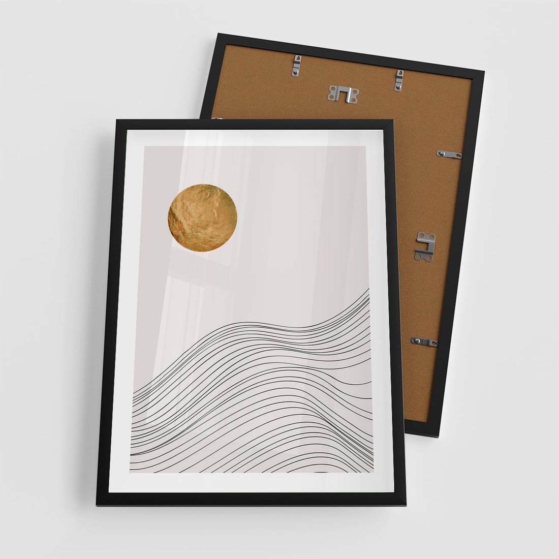 - Plakat w ramie 50x70 - Minimalistyczne Słońce: Blask i Złoto