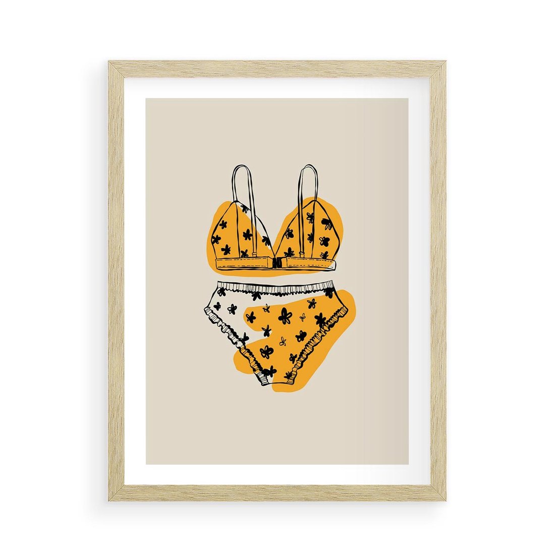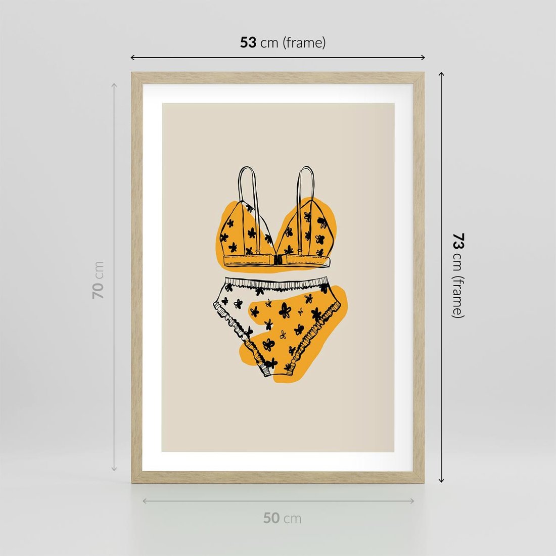 Plakat w ramie 50x70 - Minimalistyczny Szkic Bielizny - minimalistyczna grafika, szkic bielizny - rama drewno