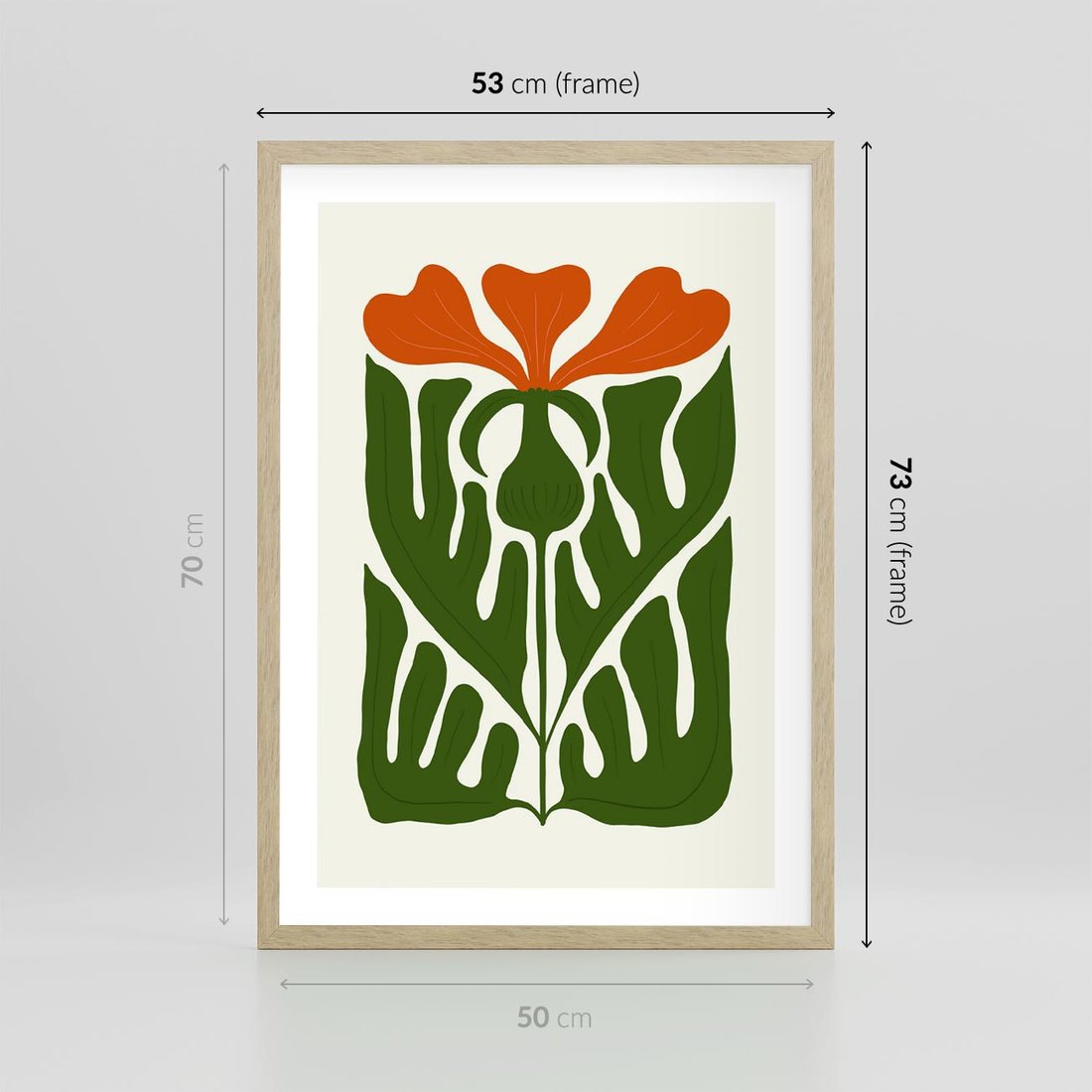 Plakat w ramie 50x70 - Minimalistyczny Urok Kwiatu - kwiat, sztuka nowoczesna - rama drewno