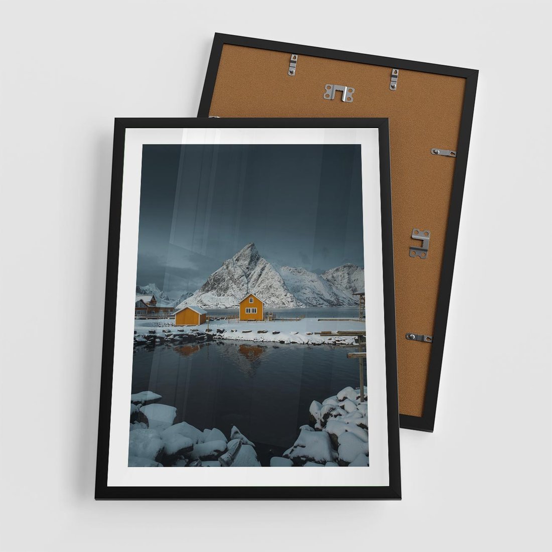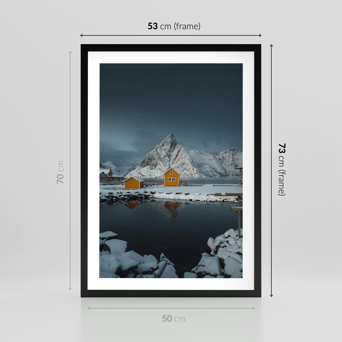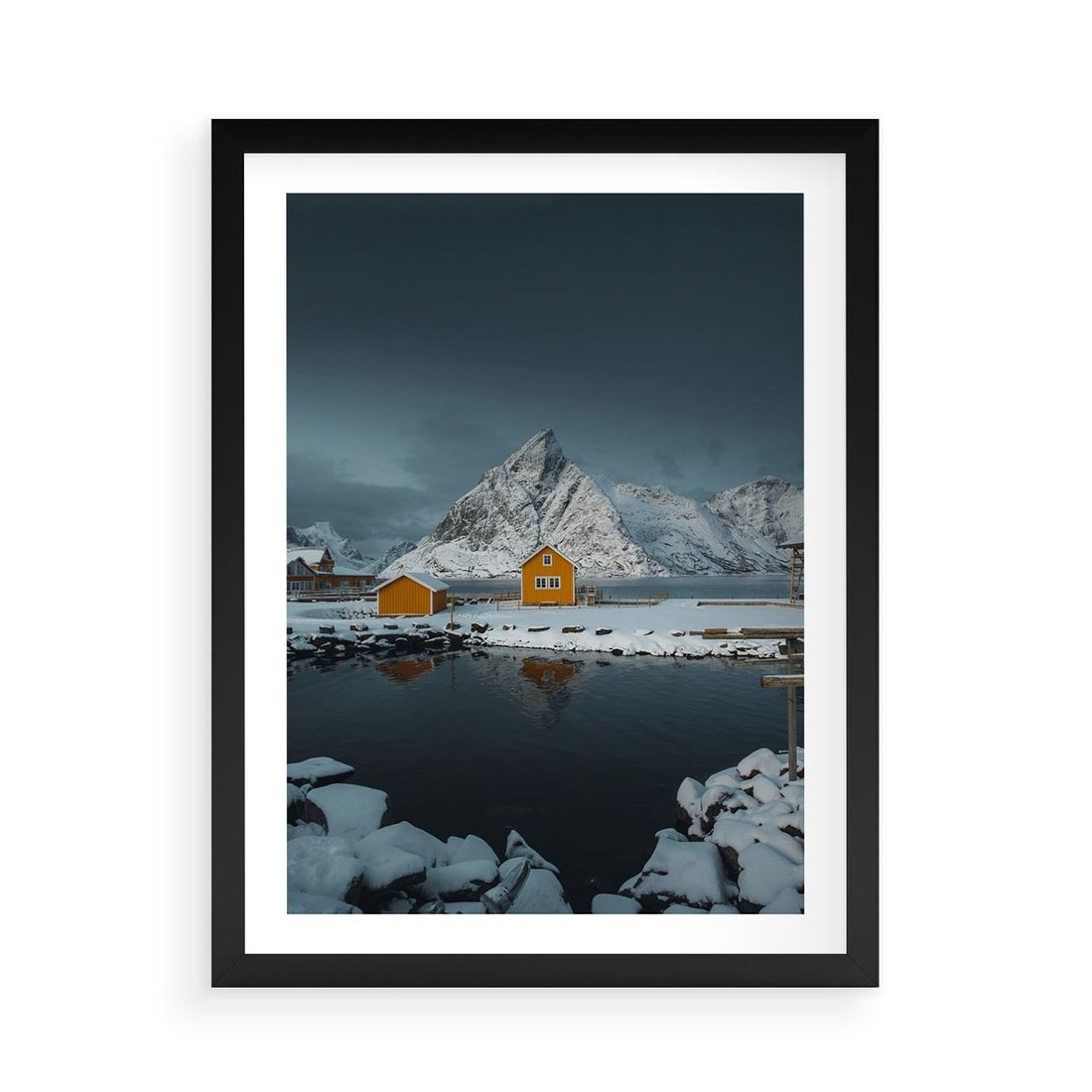Plakat w ramie 50x70 - Minimalizm i Urok Natury - skandynawskie, domki - rama czarna