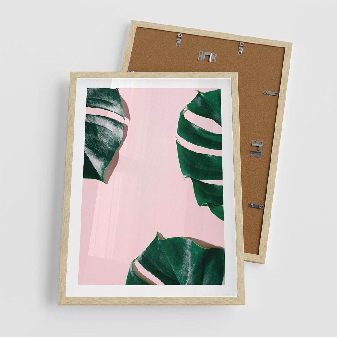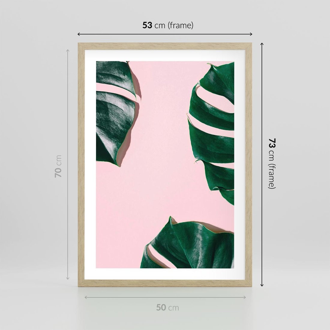 Plakat w ramie 50x70 - Minimalizm Natury - minimalizm, liście monstery - rama drewno
