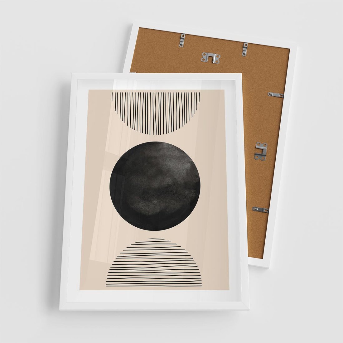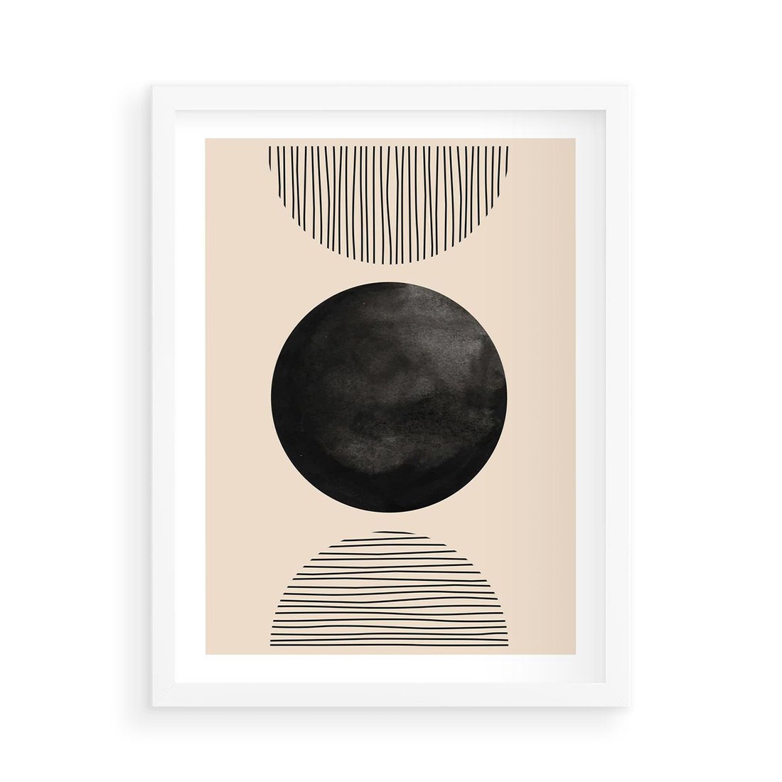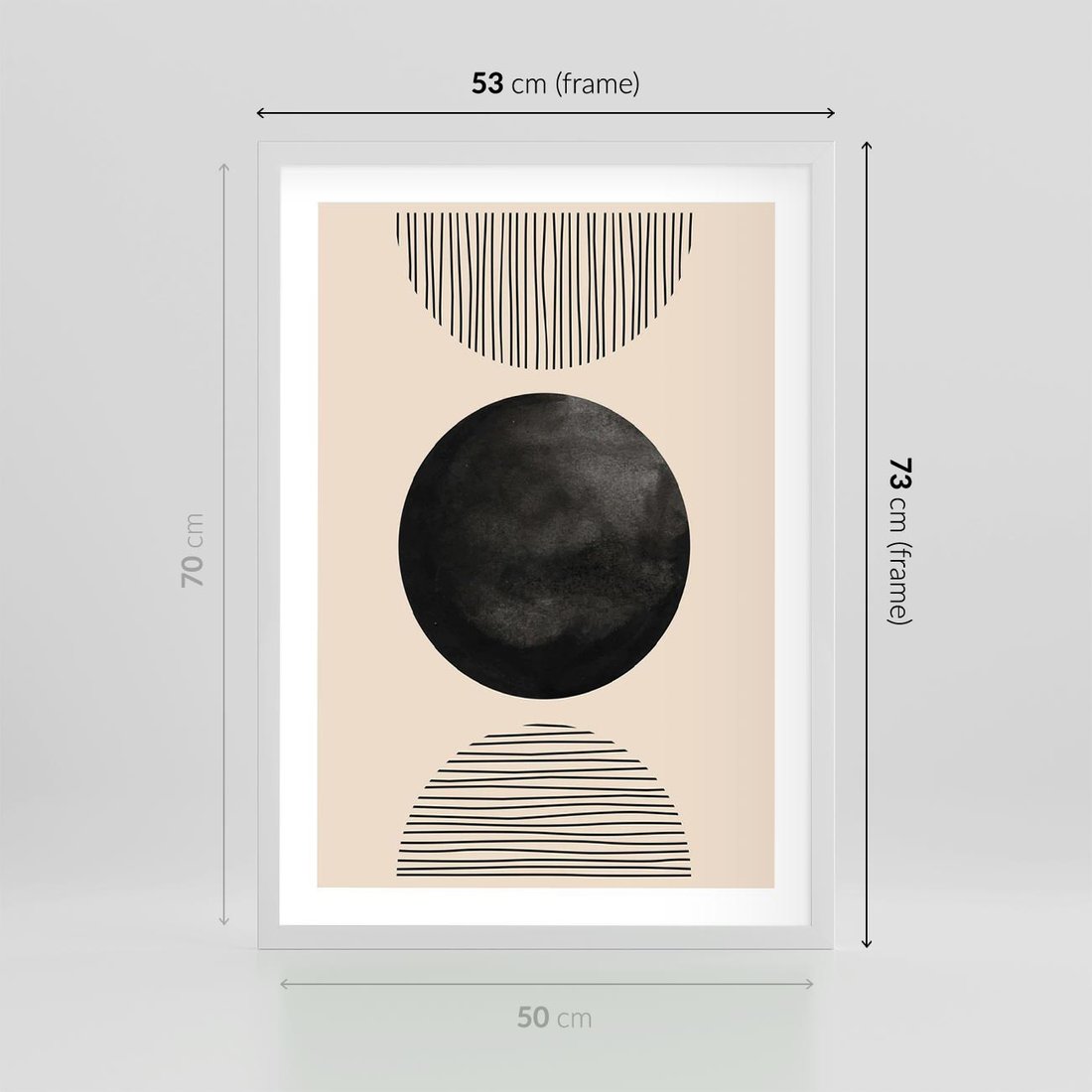 Plakat w ramie 50x70 - Minimalizm w Kształtach - geometryczny graficzny obraz, czarne koło - rama biała