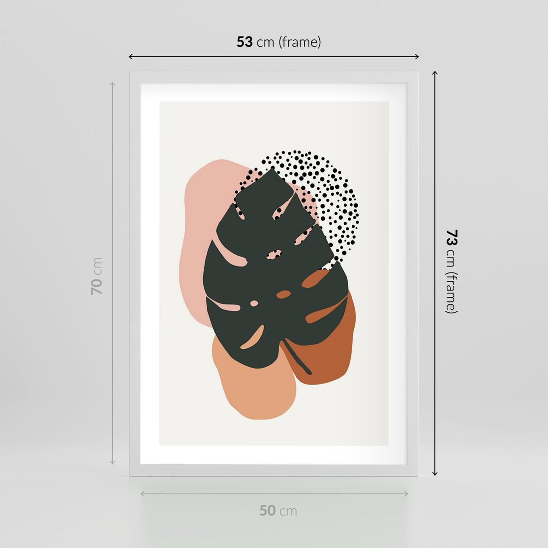- Plakat w ramie 50x70 - Minimalizm w Liściach Monstery: Plamy i Kropki