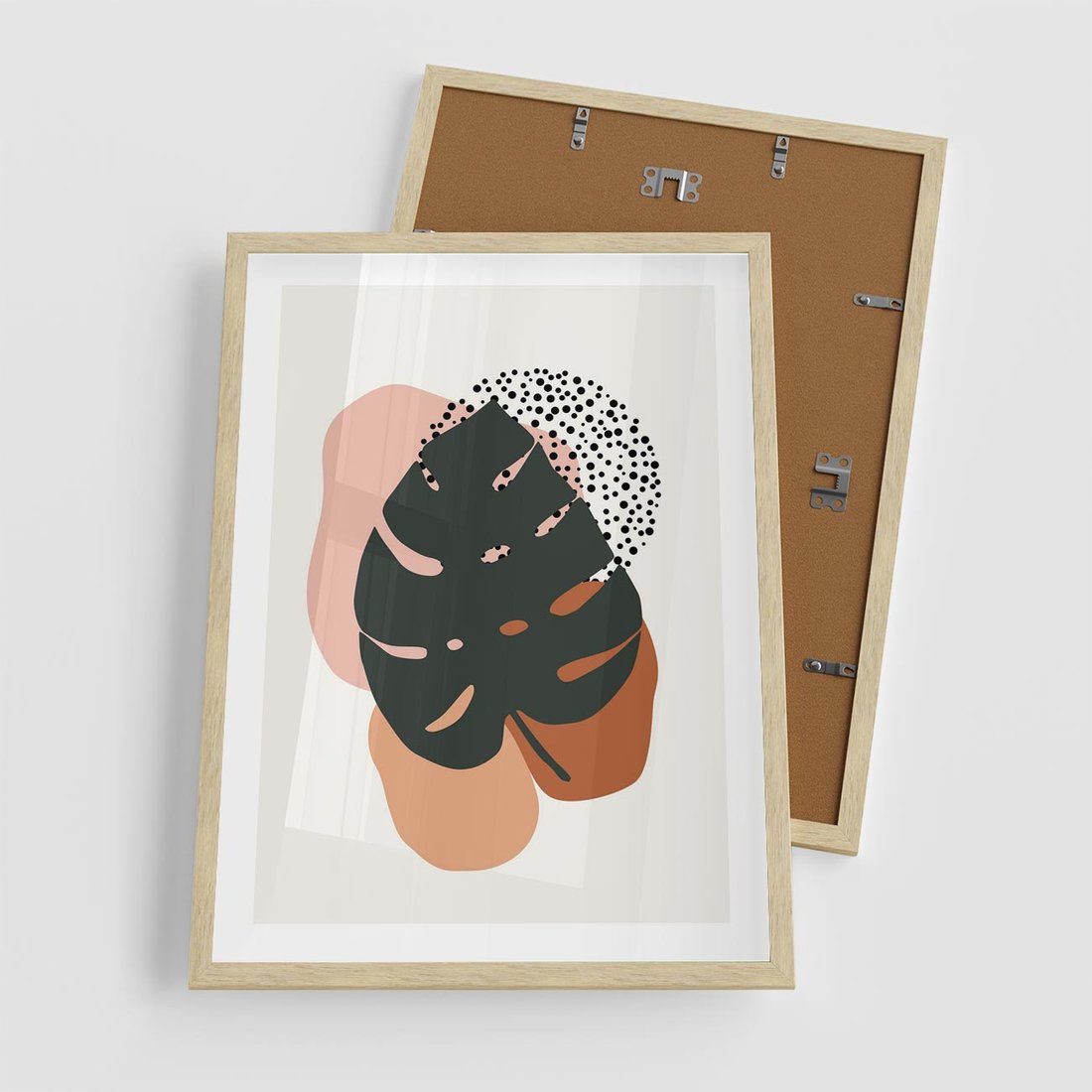 - Plakat w ramie 50x70 - Minimalizm w Liściach Monstery: Plamy i Kropki