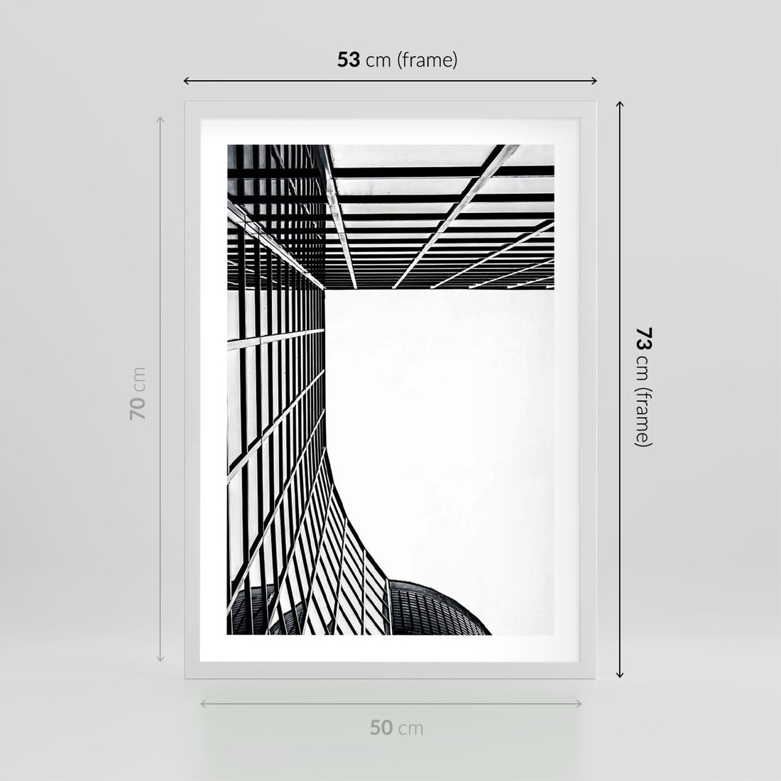 Plakat w ramie 50x70 - Minimalizm Wysokości - architektura, czarno białe zdjęcie - rama biała