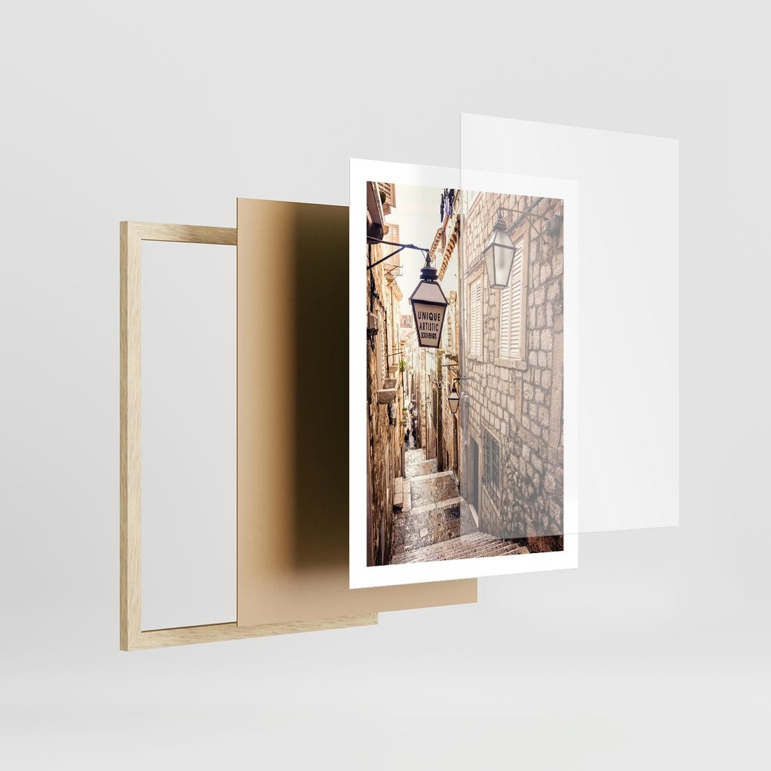 Plakat w ramie 50x70 - mistyczna podróż - uliczka, perspektywa - rama drewno