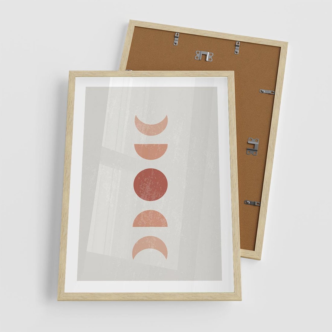 Boho plakat utrzymany w odcieniach beżu i brązu, przedstawiający słońce i księżyc, tworzy hipnotyzujący i mistyczny nastrój.