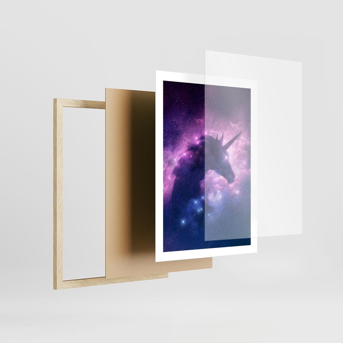 Plakat w ramie 50x70 - Mityczna podróż - kosmos, jednorożec - rama drewno