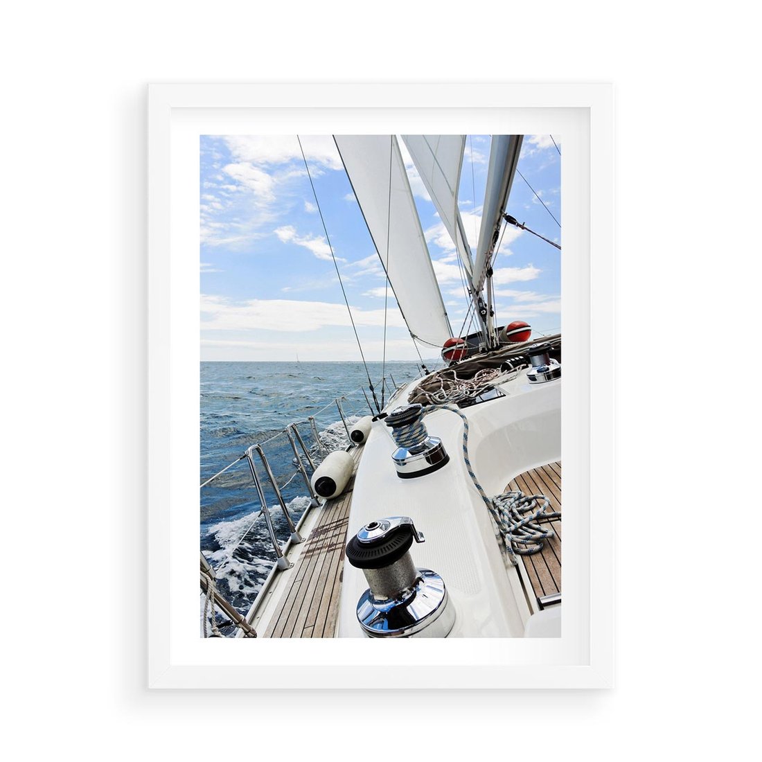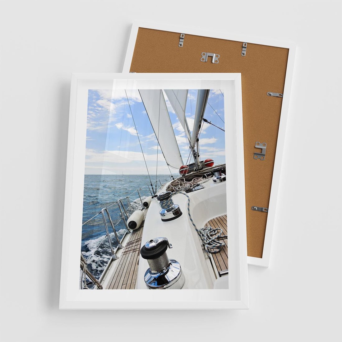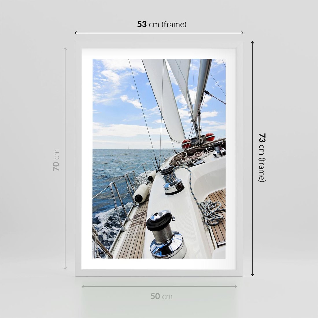Plakat w ramie 50x70 - Moc żaglowca na pełnym morzu - żaglowiec, jacht - rama biała