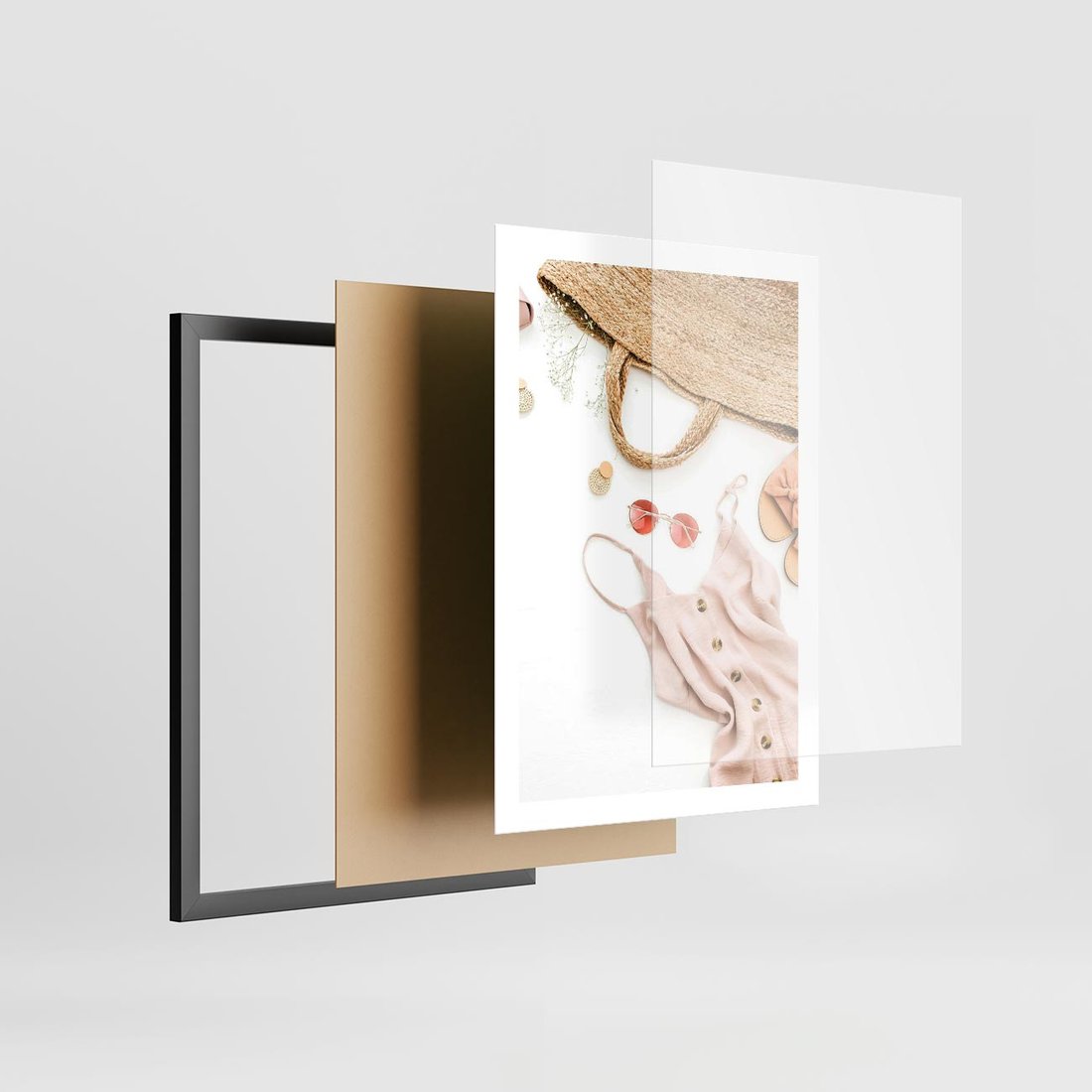 Plakat w ramie 50x70 - Moda na Plażę - kompozycja fashion, sukienka - rama czarna