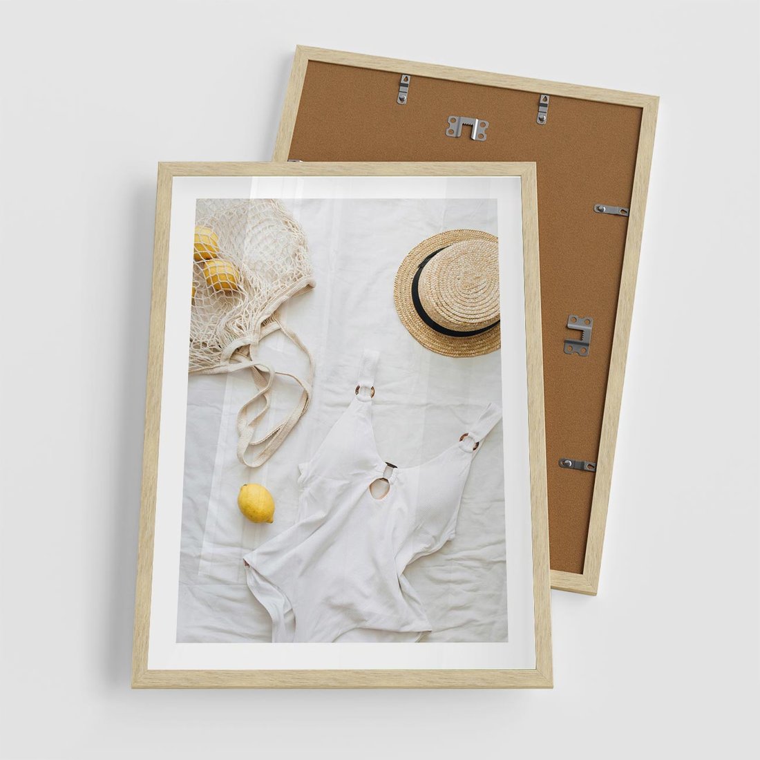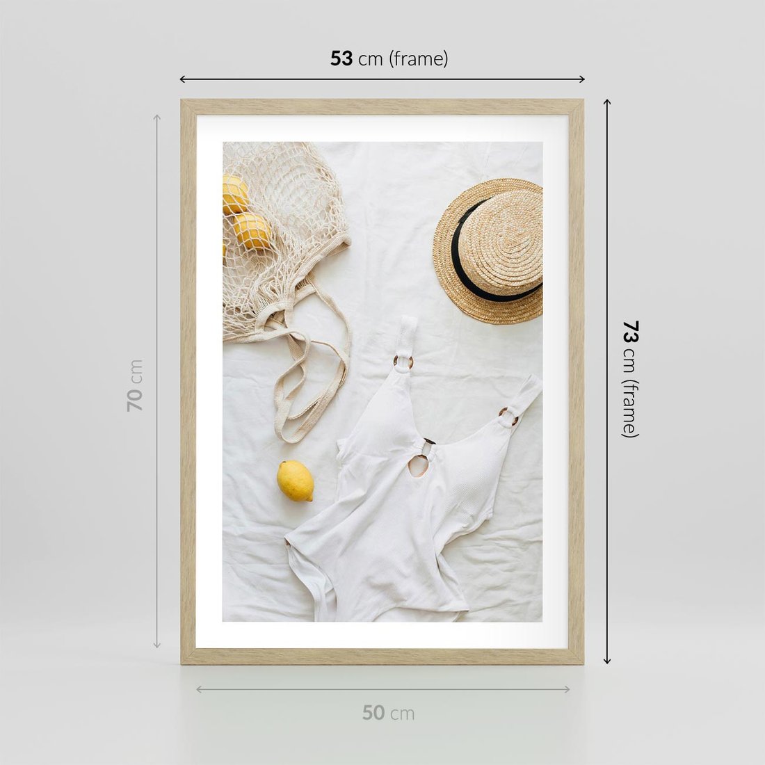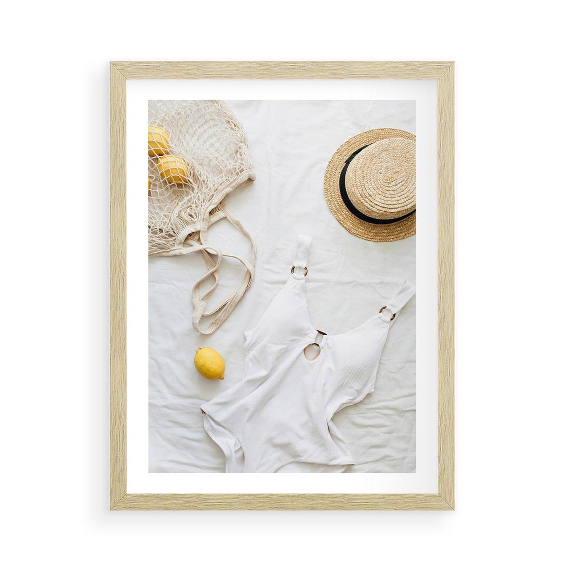 Plakat w ramie 50x70 - Moda na Wakacje: Cytrynowy Urok - kompozycja letnia, fashion - rama drewno