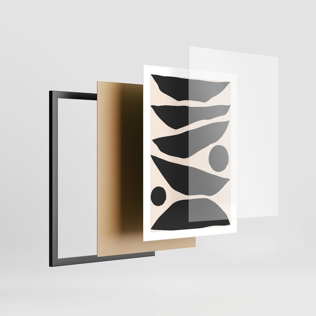 Plakat w ramie 50x70 - Modernistyczna Abstrakcja w Czerni i Bieli - abstrakcja, czarno biała grafika - rama czarna