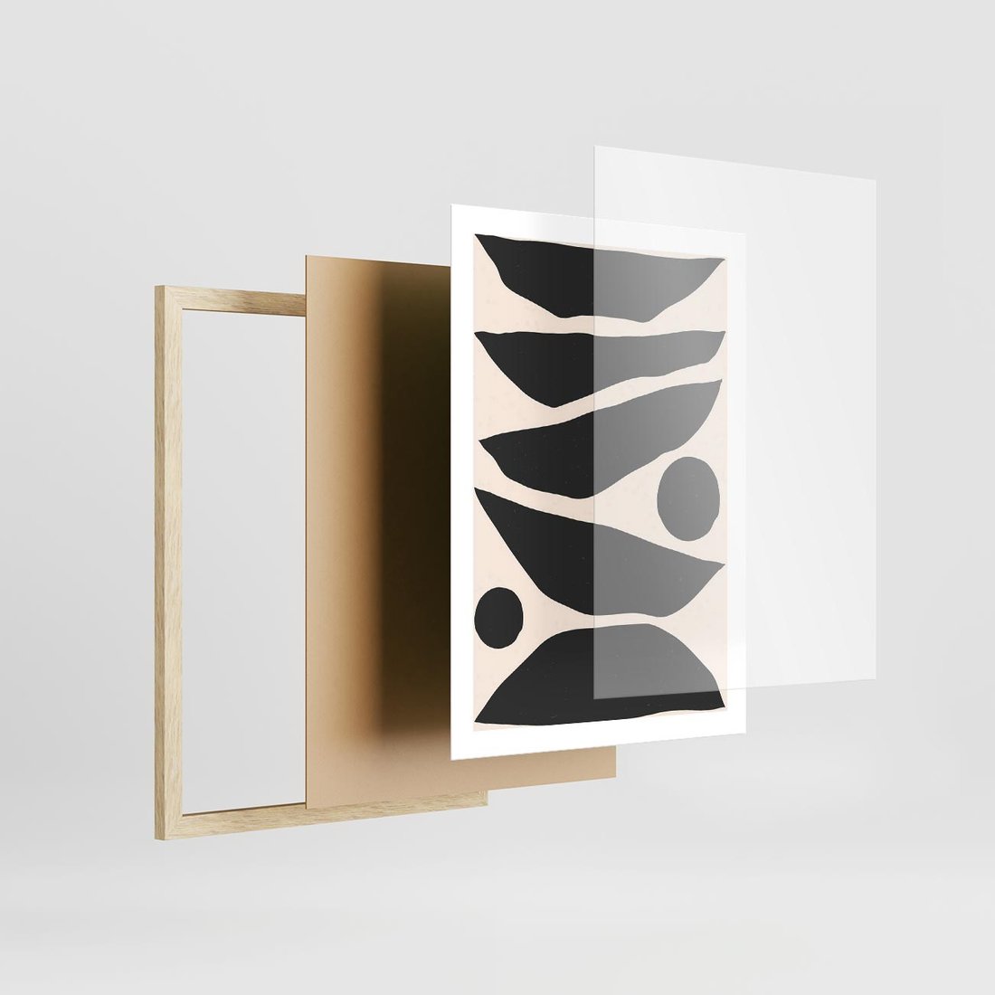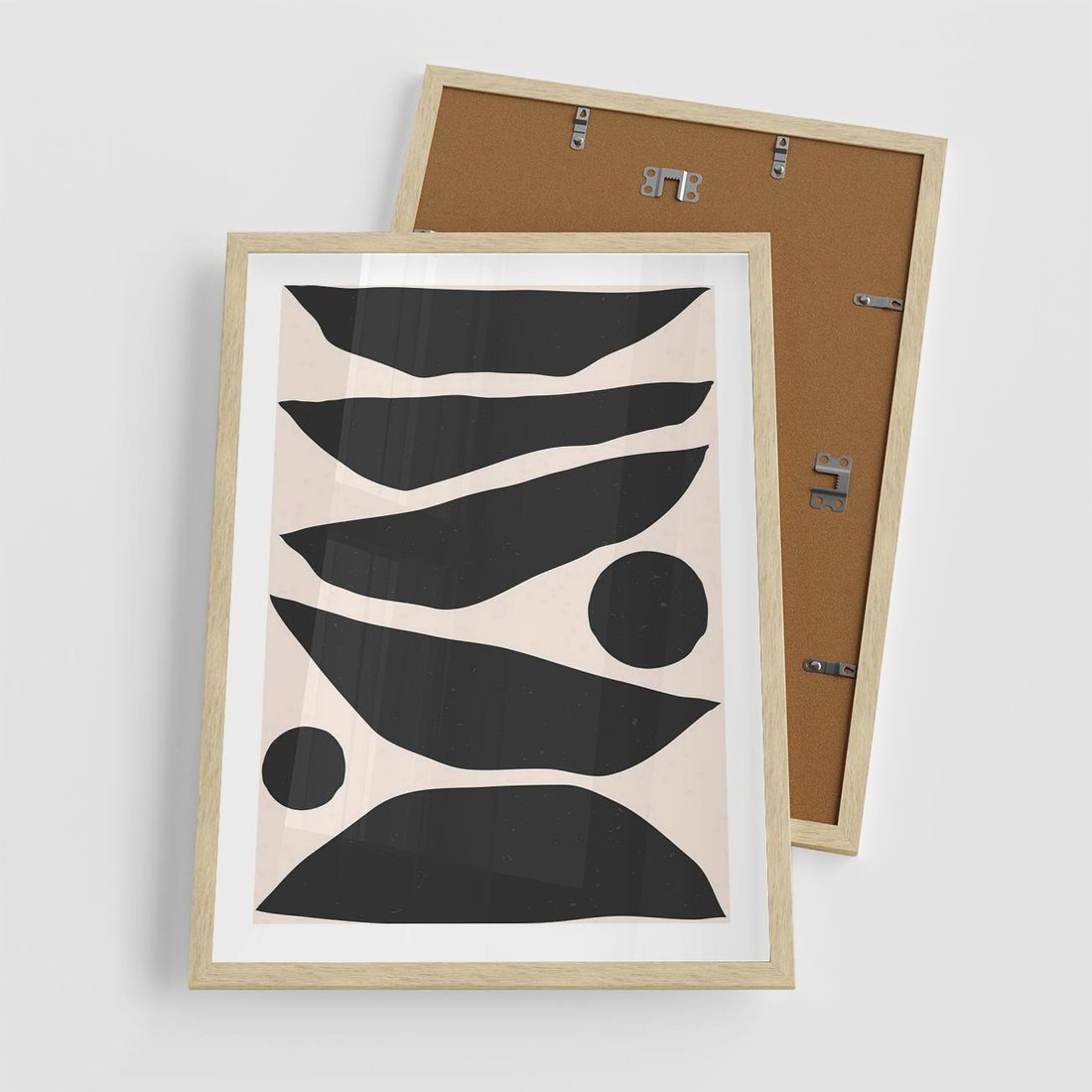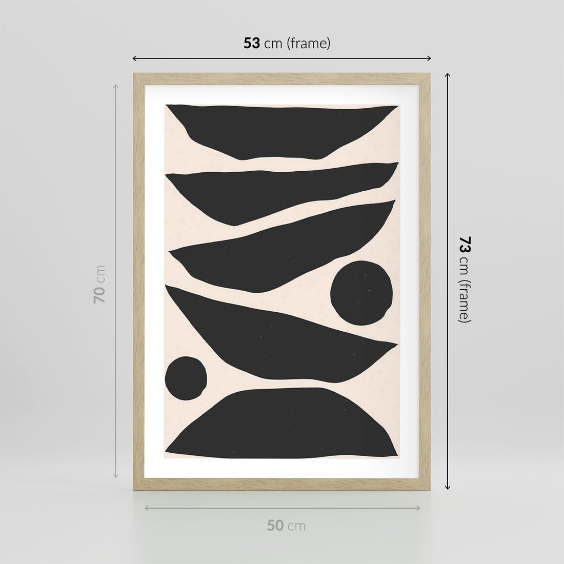 Plakat w ramie 50x70 - Modernistyczna Abstrakcja w Czerni i Bieli - abstrakcja, czarno biała grafika - rama drewno