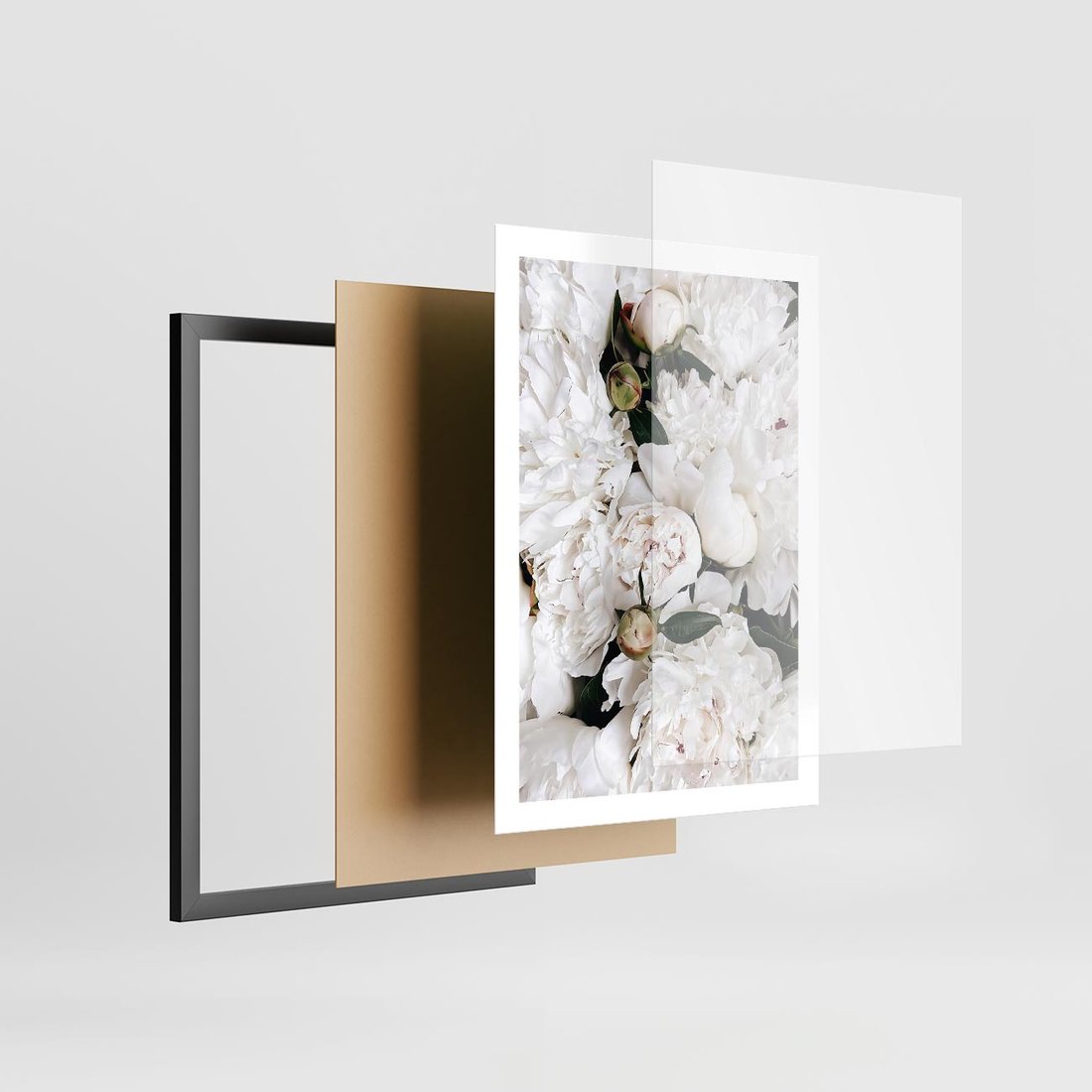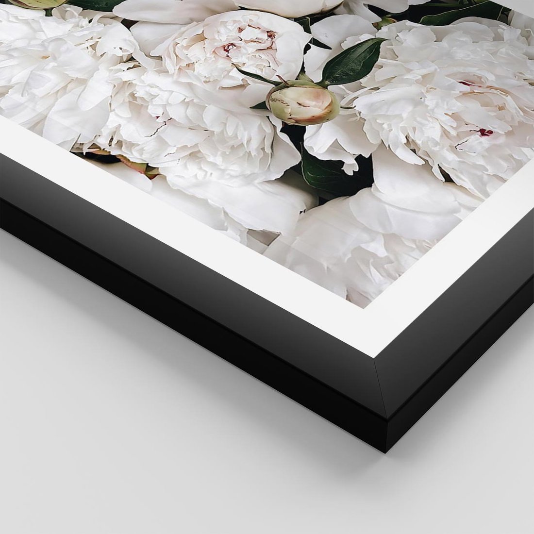 Plakat w ramie 50x70 - Modne Białe Kwiaty - białe kwiaty, płatki - rama czarna