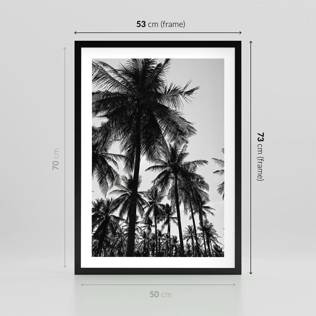 Plakat w ramie 50x70 - Mono Tropiki - palmy, drzewa palmowe - rama czarna