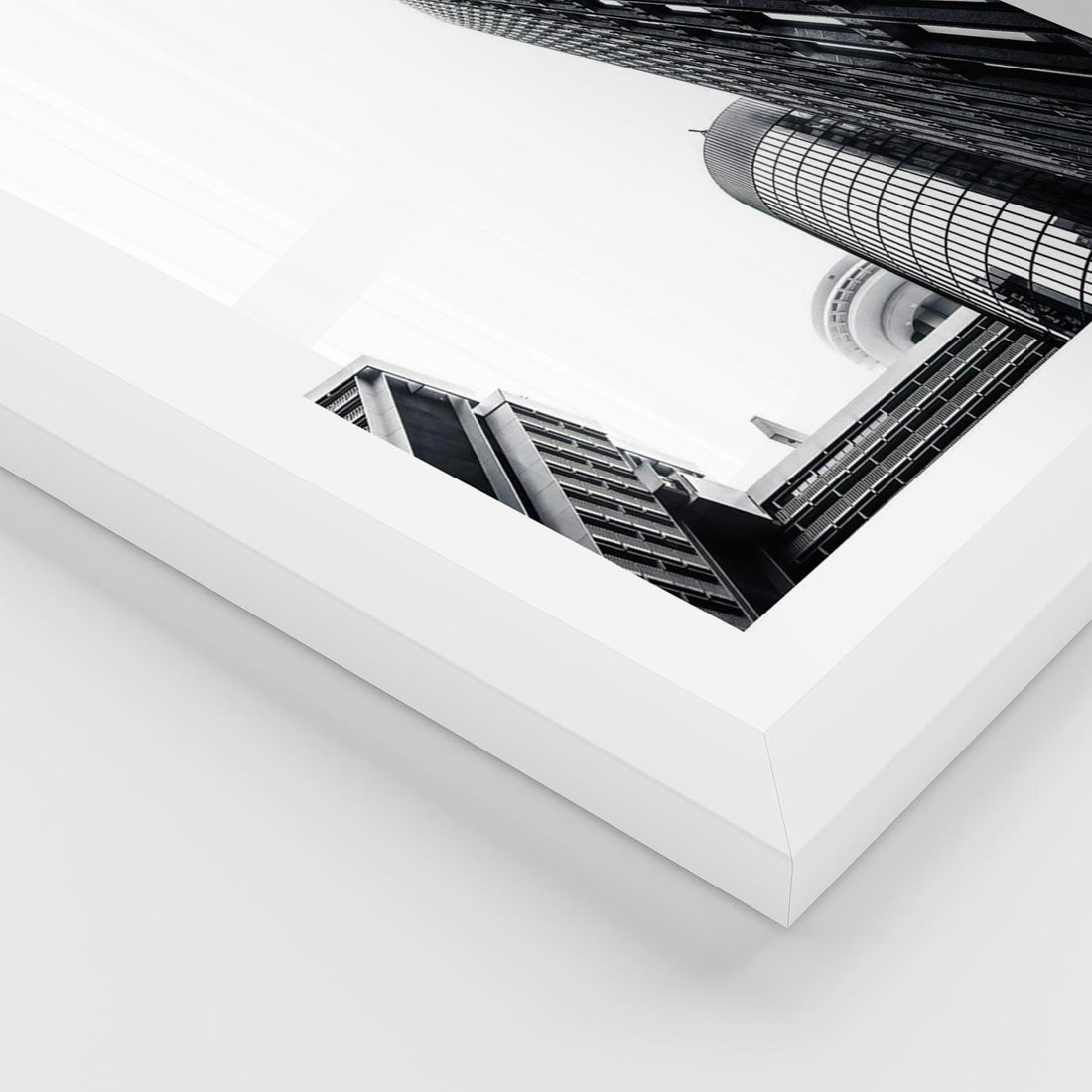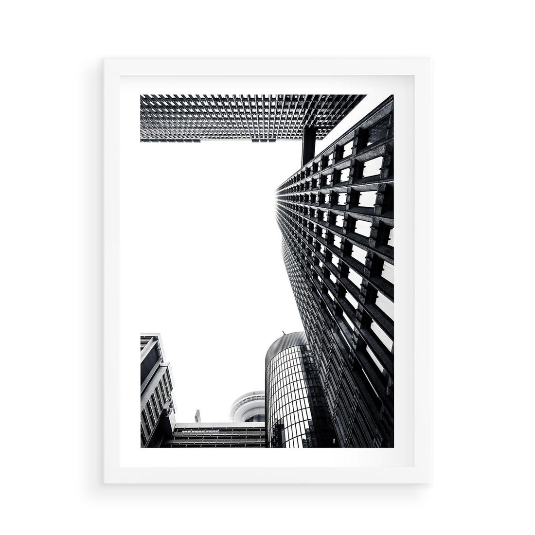 Plakat w ramie 50x70 - Monochromatyczna Sceneria Wieżowców - architektura, wieżowce - rama biała