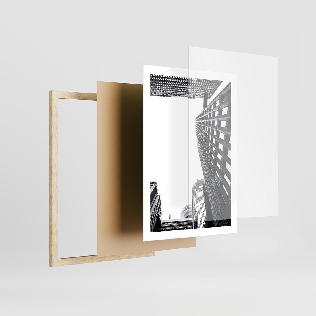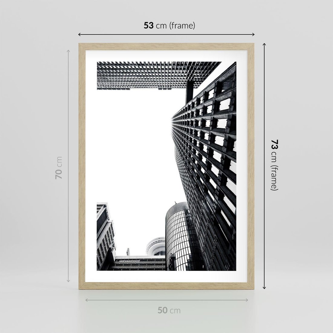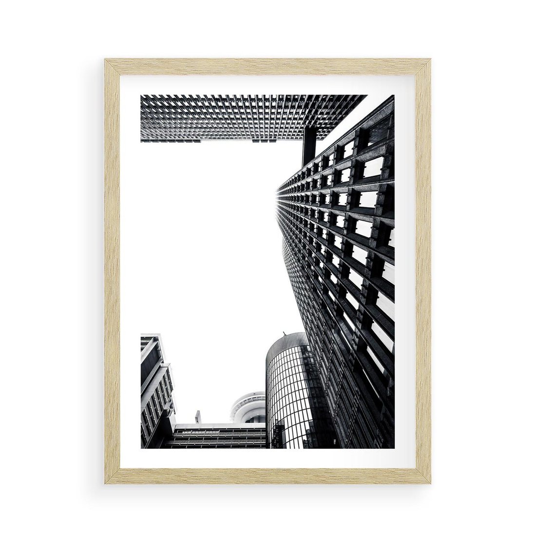 Plakat w ramie 50x70 - Monochromatyczna Sceneria Wieżowców - architektura, wieżowce - rama drewno