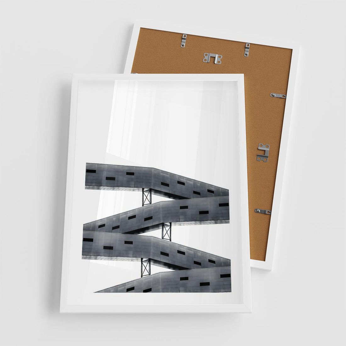 Plakat w ramie 50x70 - Monochromatyczna Sztuka Nowoczesnych Budynków - architektura, nowoczesne formy - rama biała