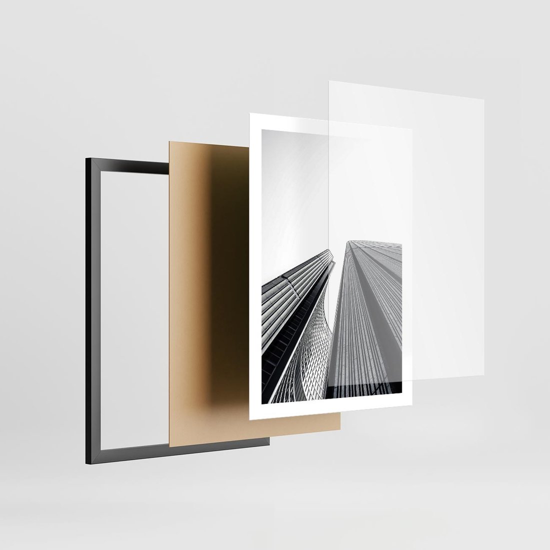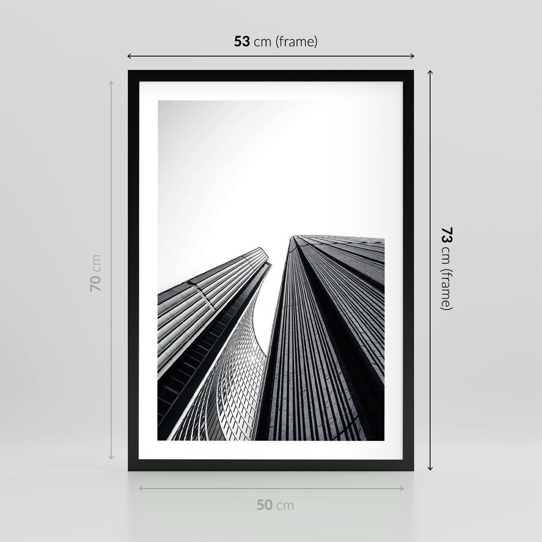 Plakat w ramie 50x70 - Monochromatyczna Wizja - architektura, wysoki wieżowiec - rama czarna
