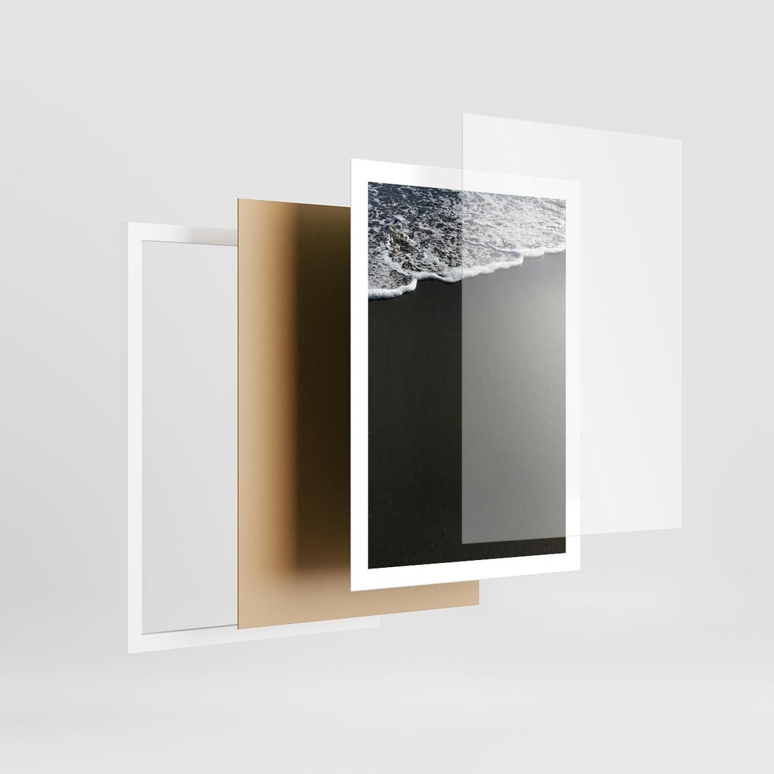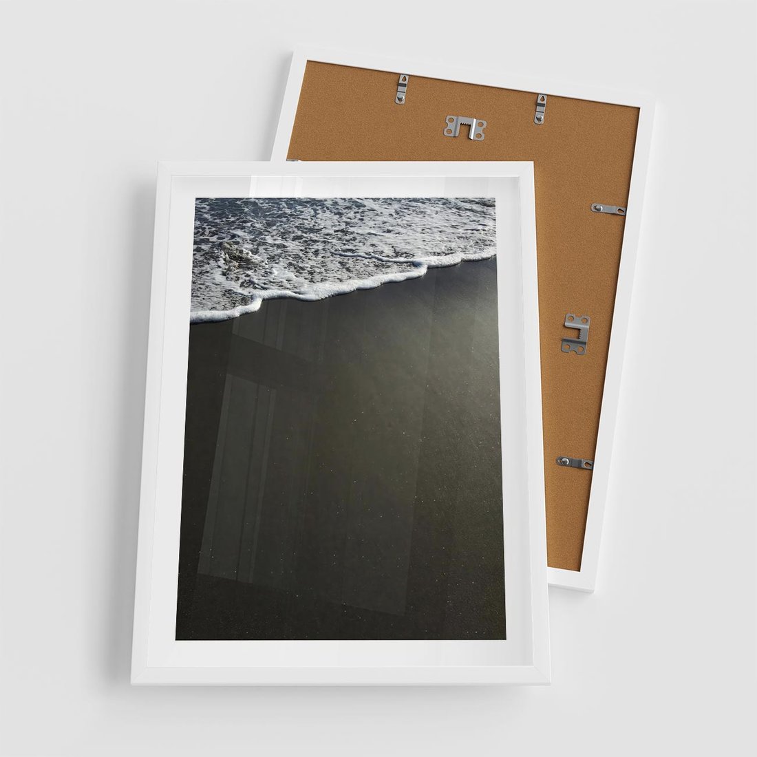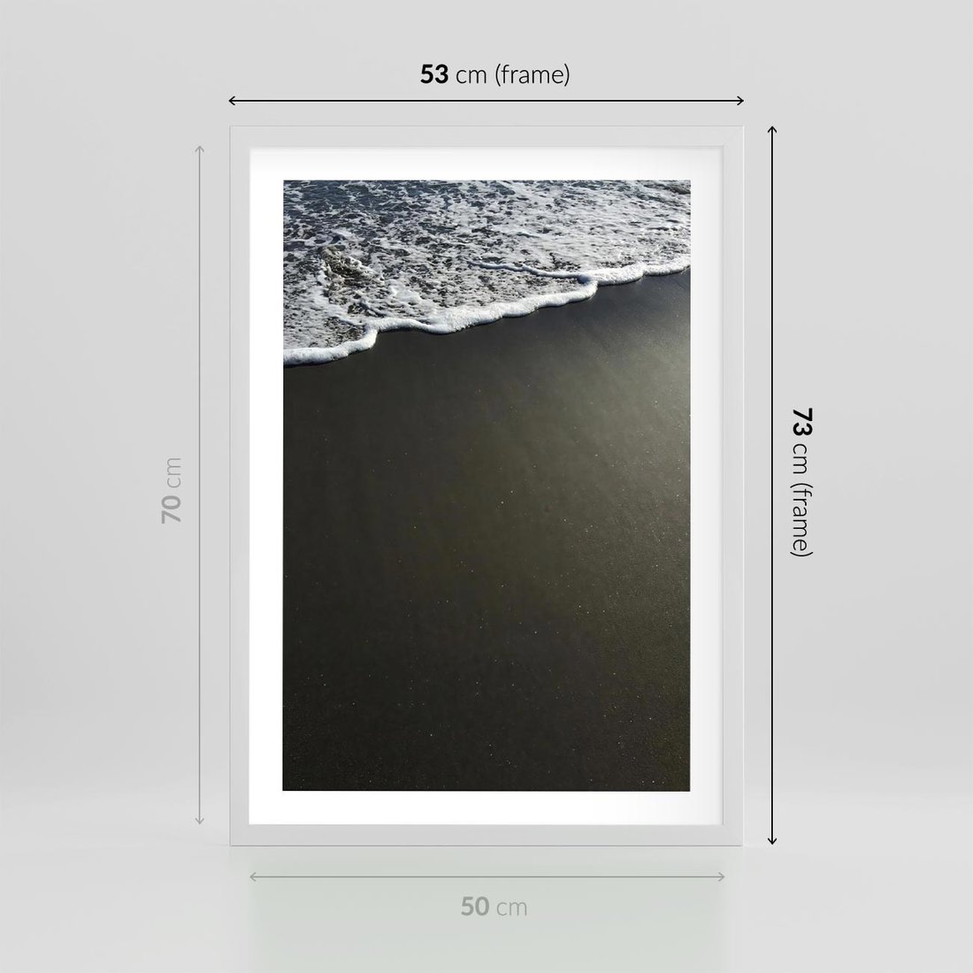 Plakat w ramie 50x70 - Morskie Fale na Plaży - plaża, morskie fale omywają piasek - rama biała