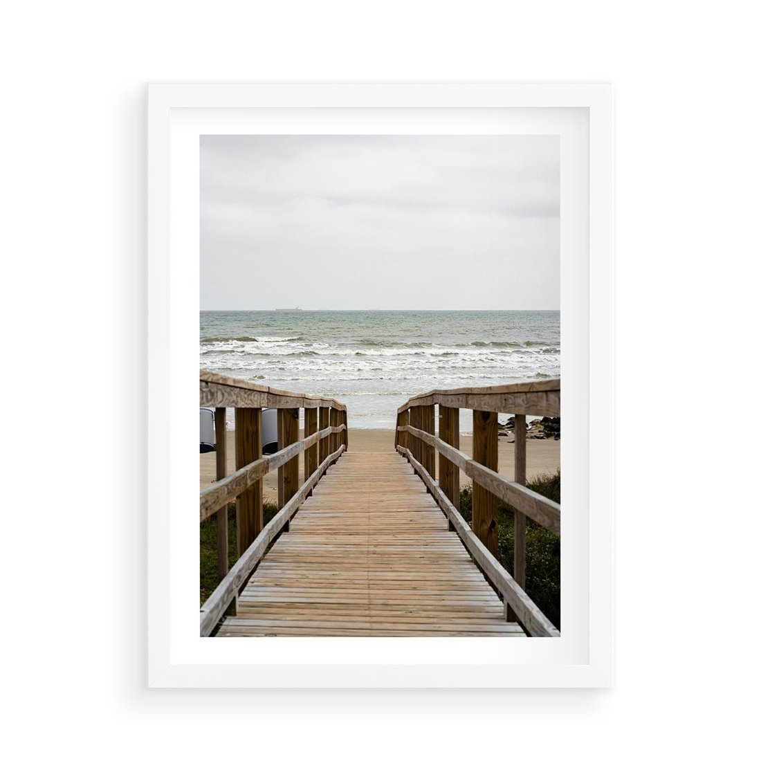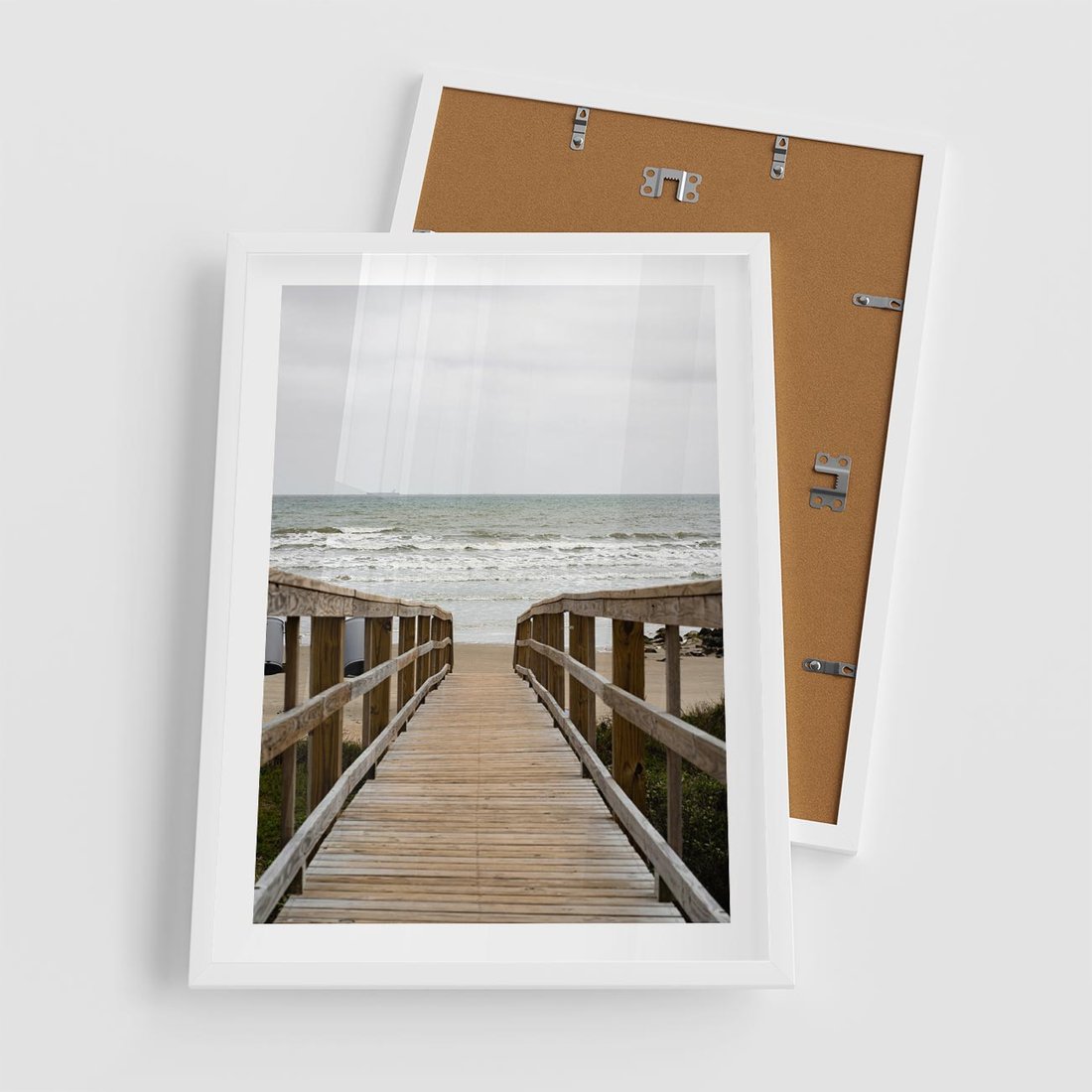 Plakat w ramie 50x70 - Morze i drewniany pomost - morze, pomost - rama biała
