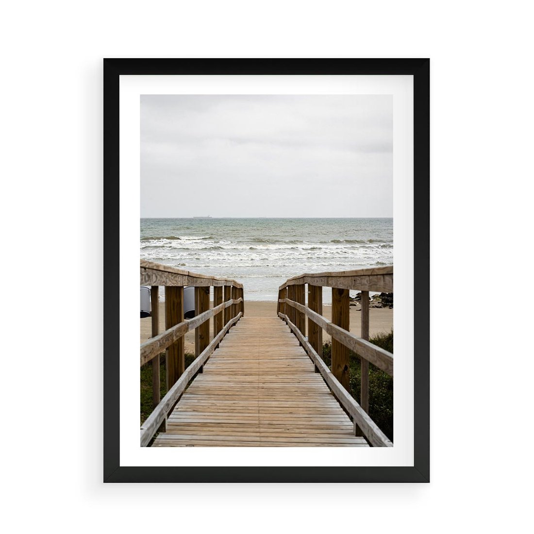 Plakat w ramie 50x70 - Morze i drewniany pomost - morze, pomost - rama czarna