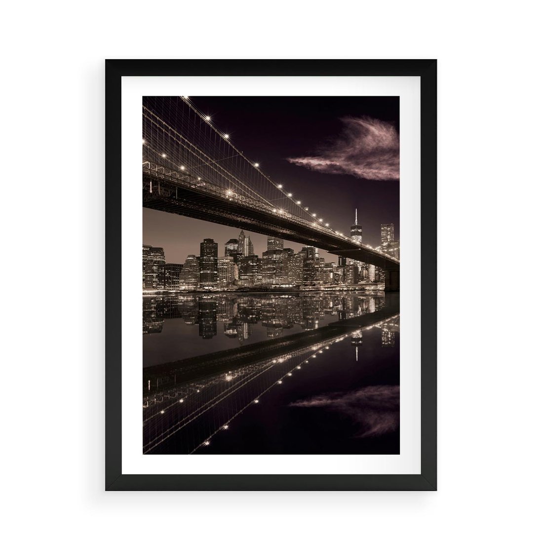 Plakat w ramie 50x70 - Most na nocnym horyzoncie - most, noc - rama czarna