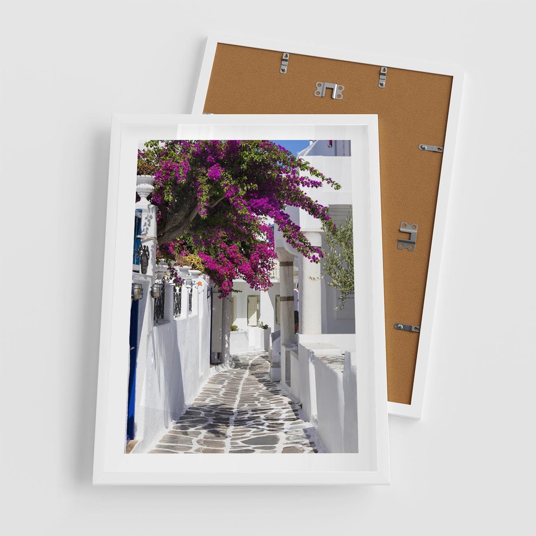 Plakat w ramie 50x70 - Mroczna Tajemnica - uliczka, perspektywa - rama biała
