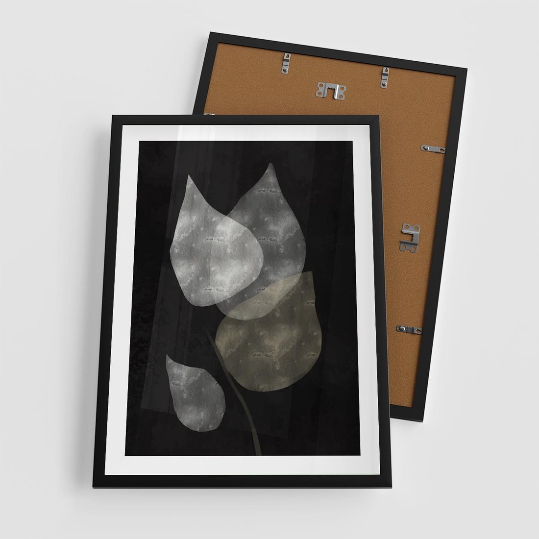 Plakat w ramie 50x70 - Mroczne Złudzenia - abstrakcyjne liście, mroczna atmosfera - rama czarna