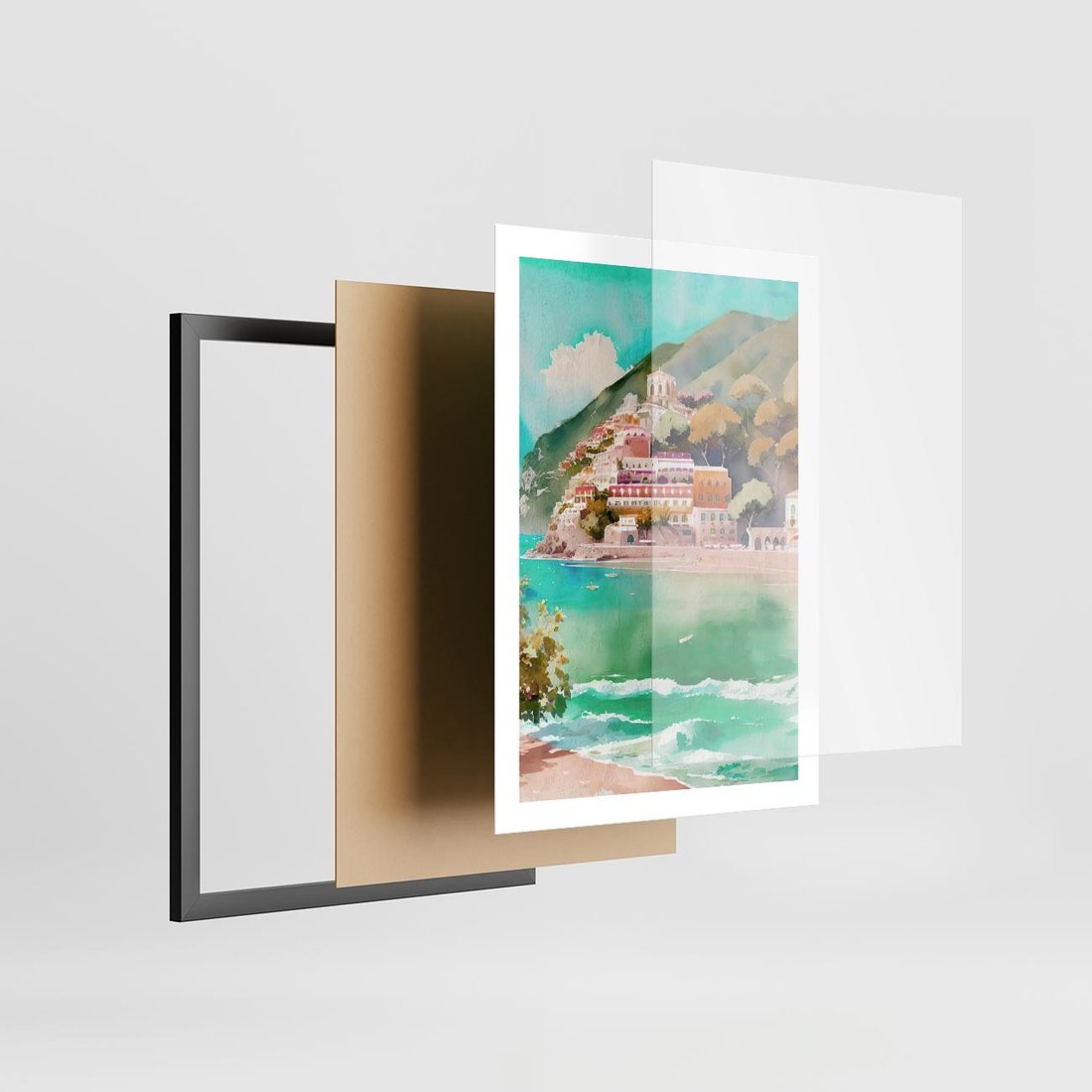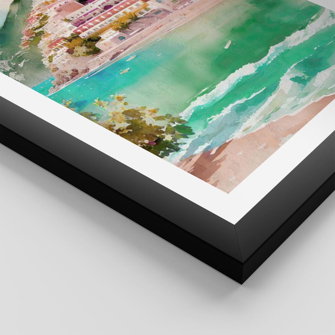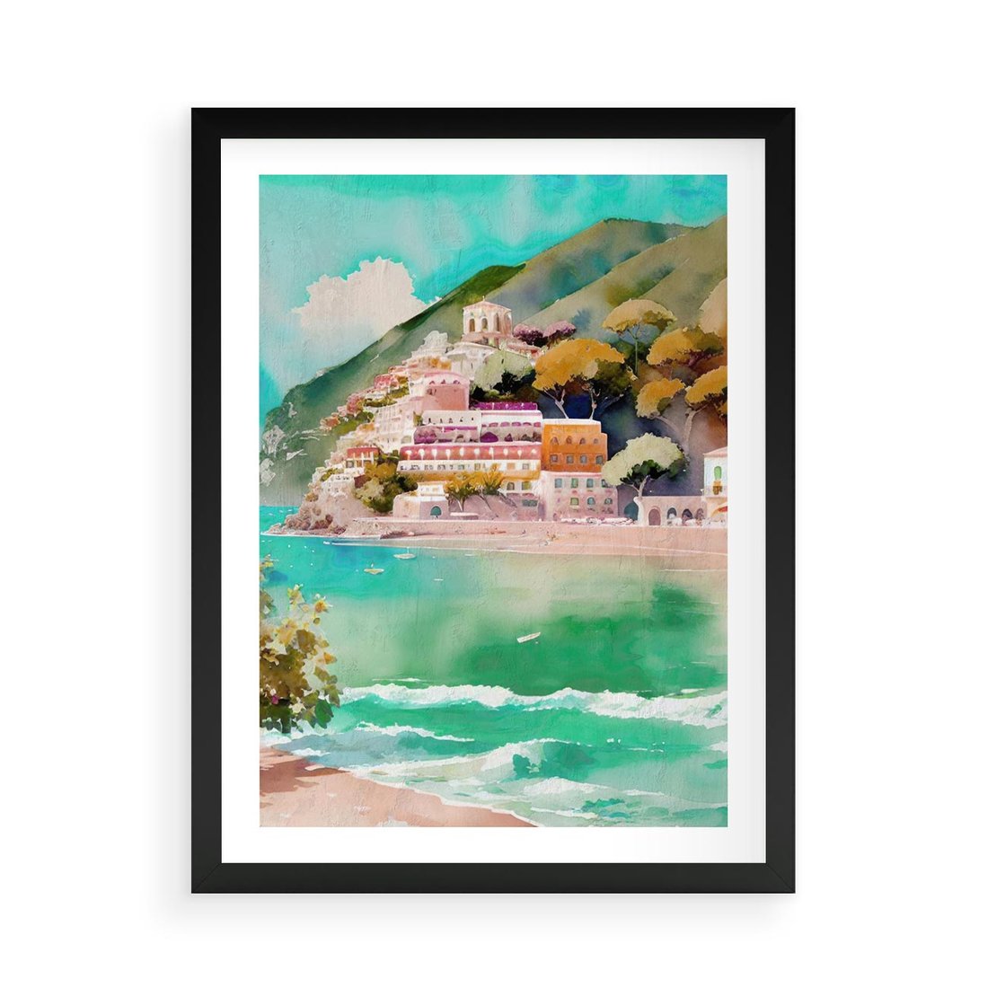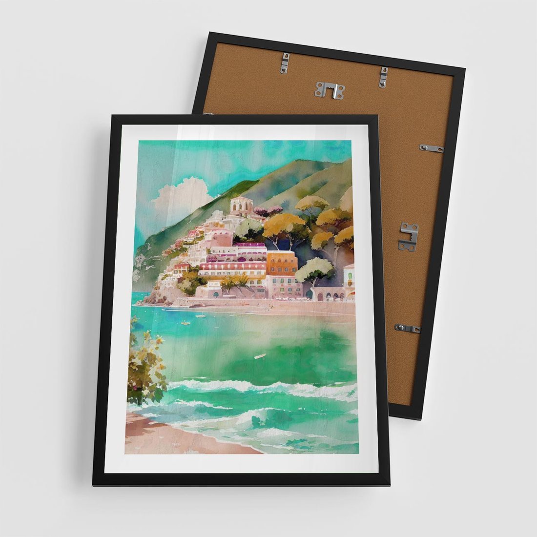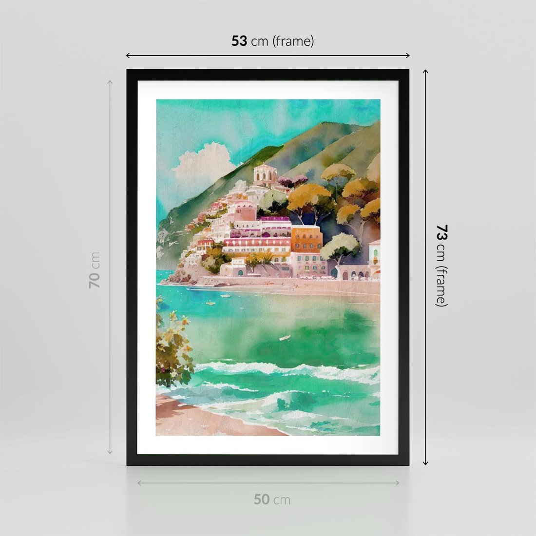Plakat w ramie 50x70 - Na Zboczu - akwarela, nadmorski pejzaż - rama czarna