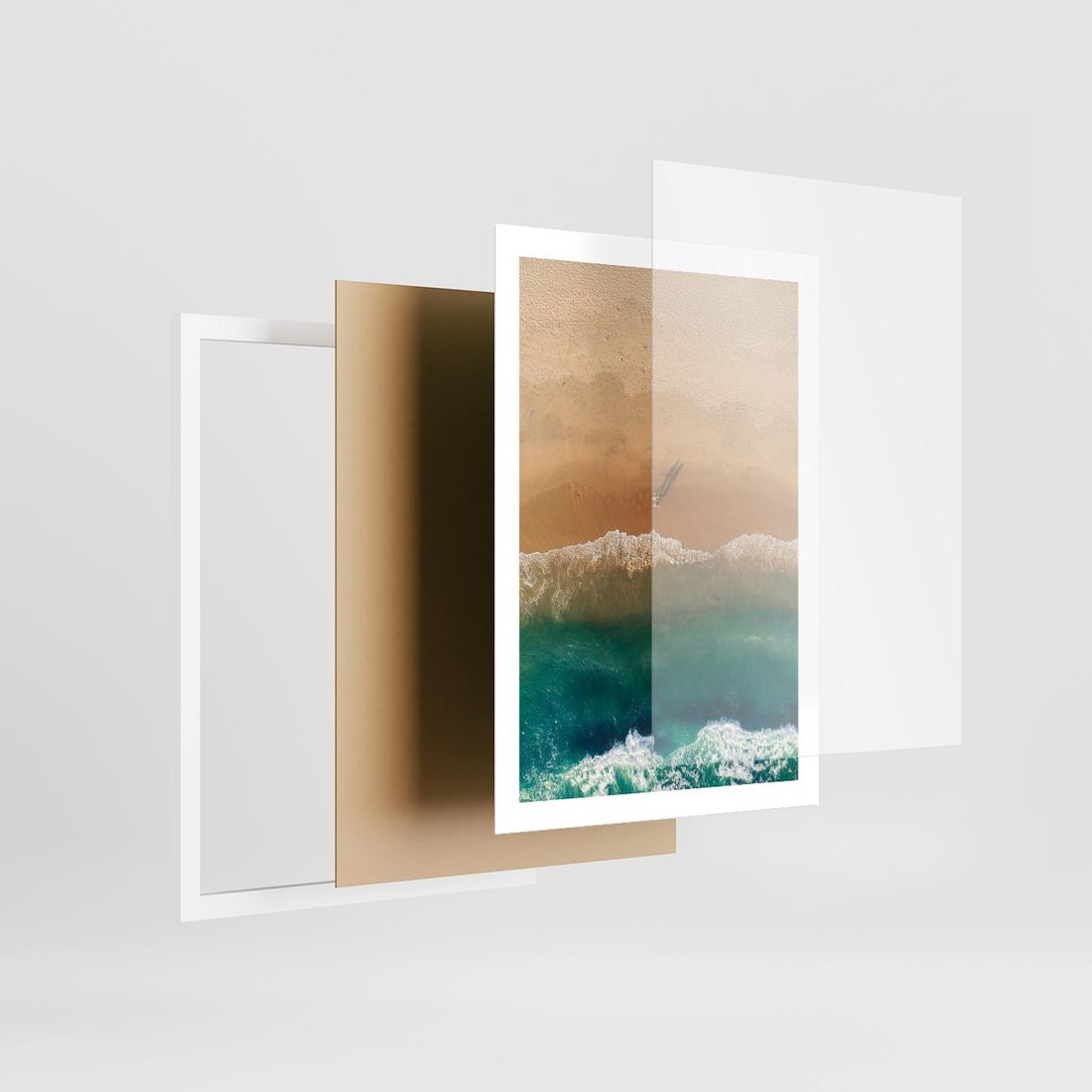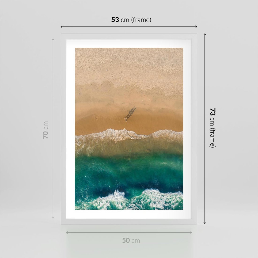 Plakat w ramie 50x70 - Nadbrzeżna Harmonia - plaża, morze - rama biała