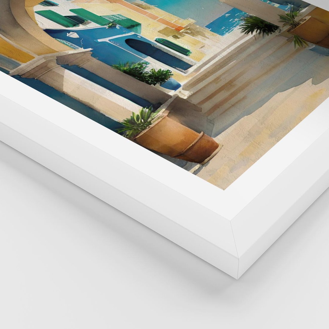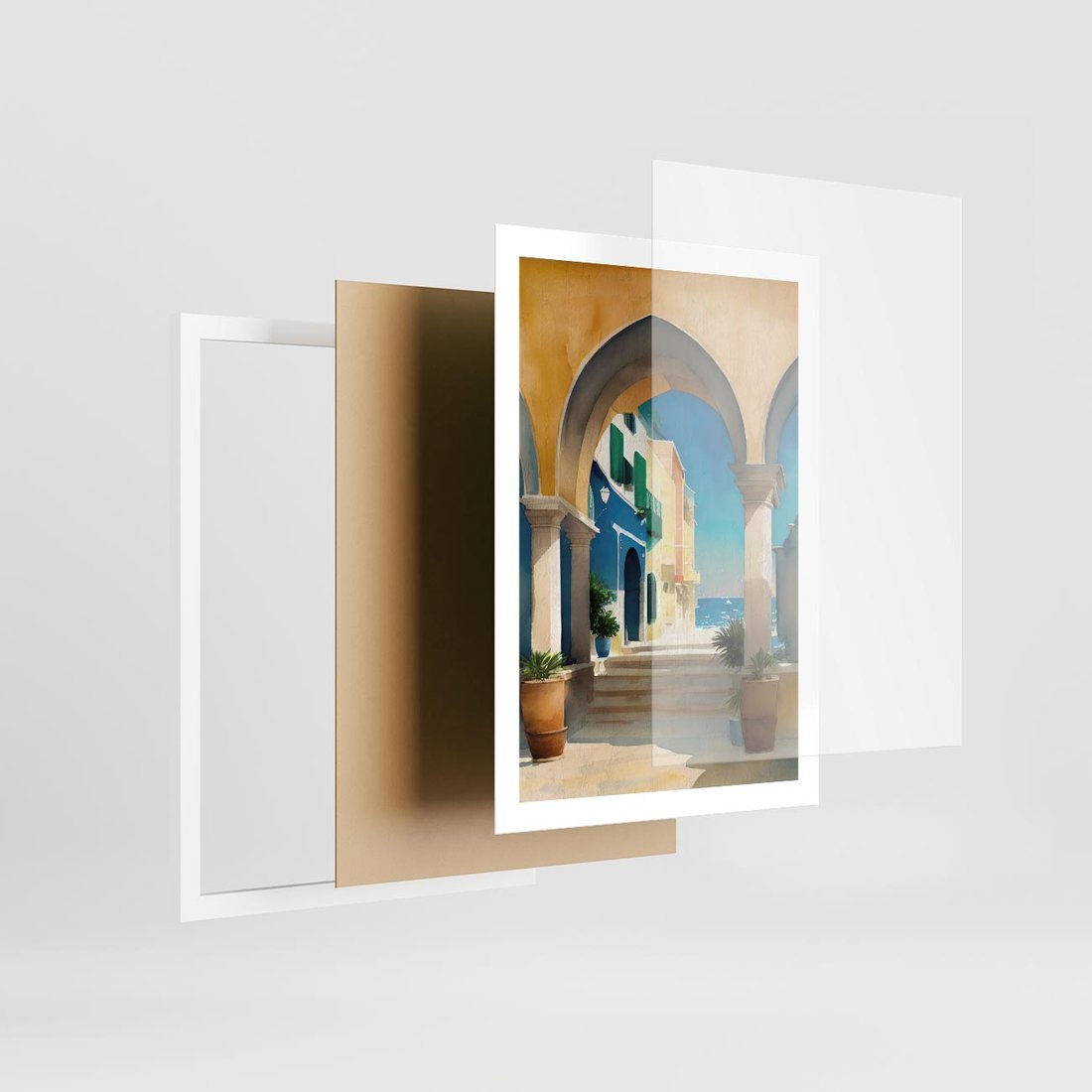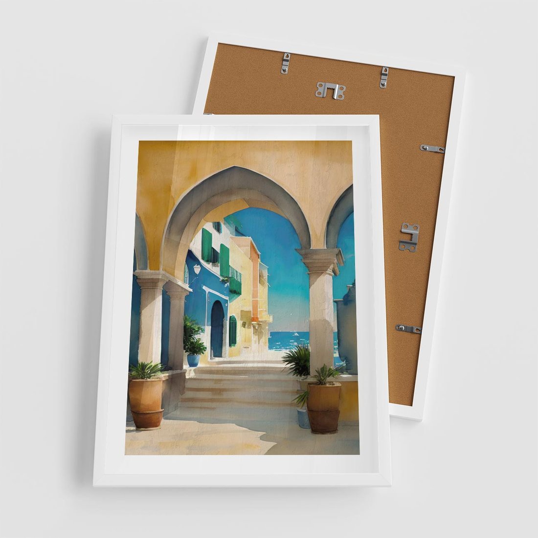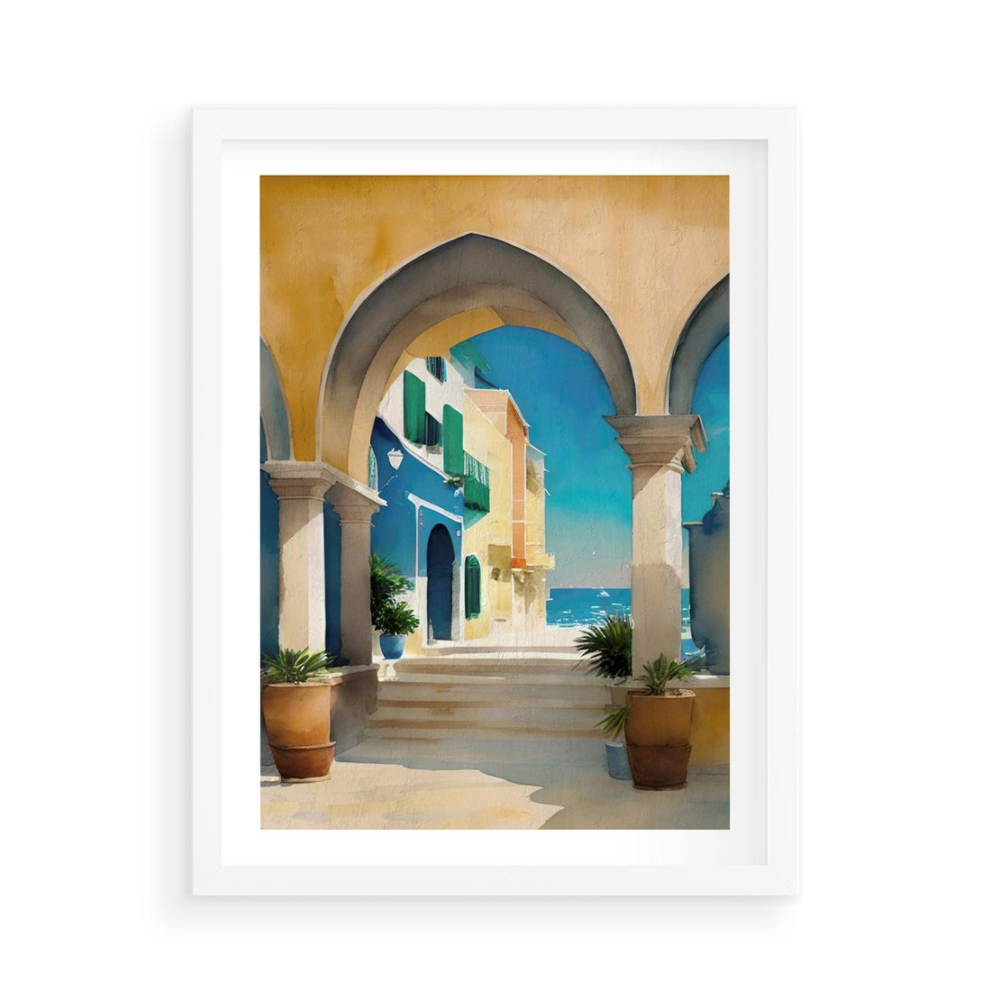 Plakat w ramie 50x70 - Nadmorskie Łuki - akwarela, śródziemnomorski klimat - rama biała
