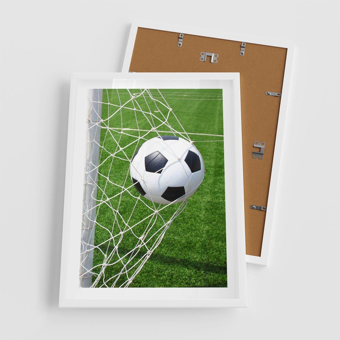 Plakat w ramie 50x70 - Namiętność Piłki i Gola - piłka nożna, gol - rama biała