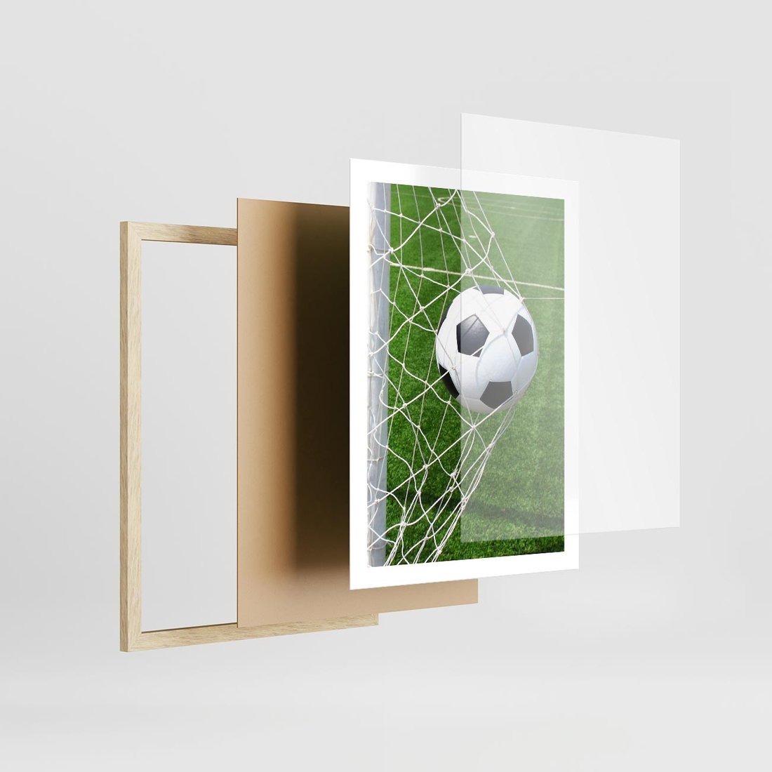 Plakat w ramie 50x70 - Namiętność Piłki i Gola - piłka nożna, gol - rama drewno