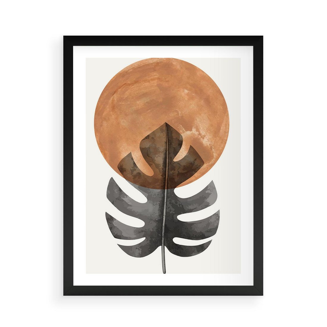 Nasza grafika to połączenie natury i nowoczesnego designu. Ten czarno-biały szkic przedstawia elegancki liść monstery w towarzystwie miedzianego koła, co tworzy minimalistyczną i stylową kompozycję. To idealna dekoracja, aby wprowadzić do swojego wnętrza harmonię między naturą a sztuką.