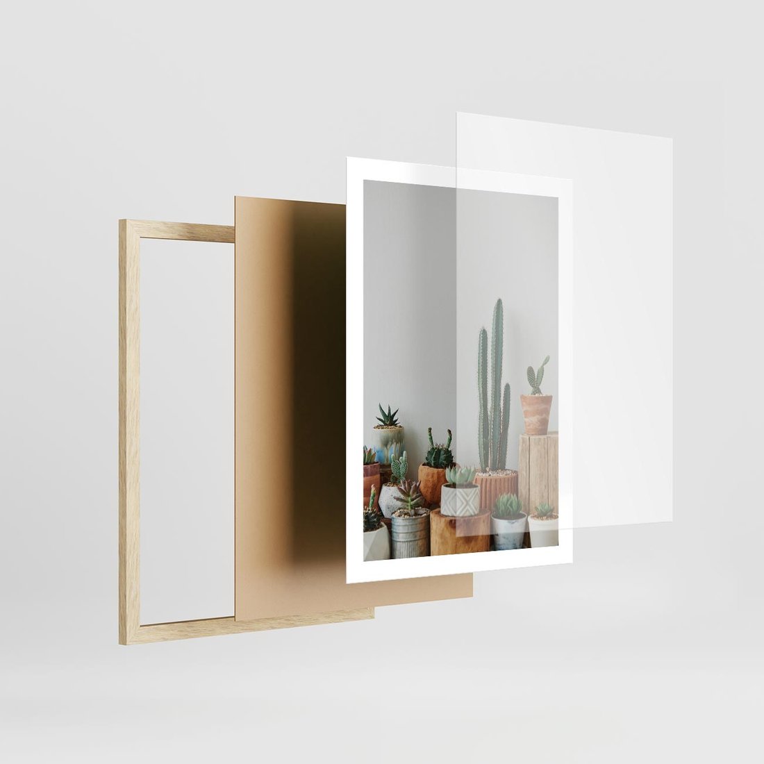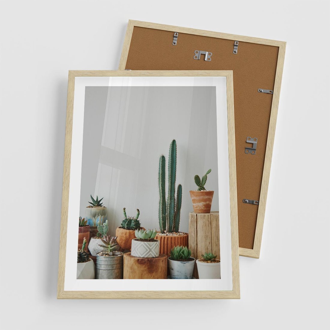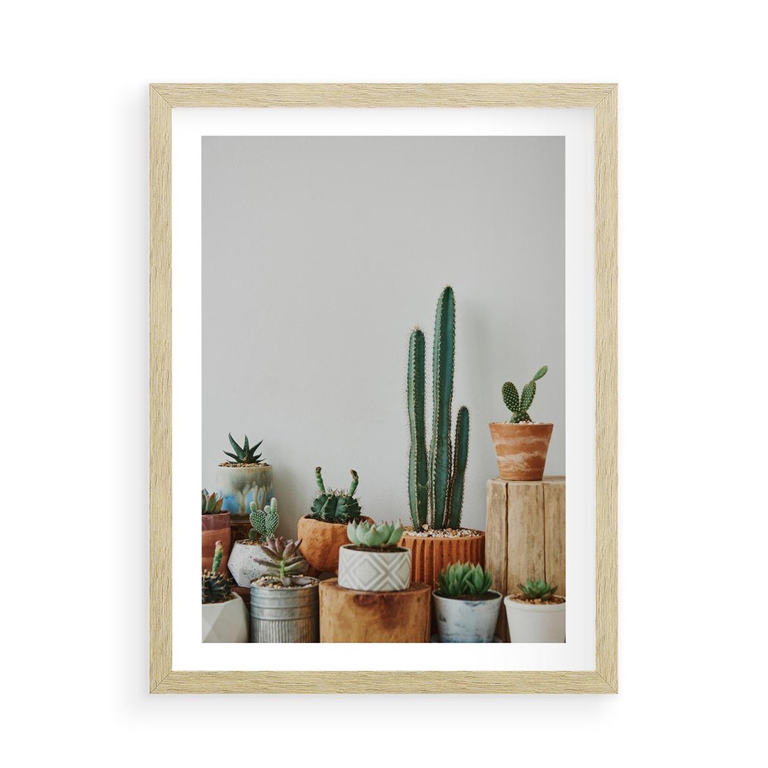 Plakat w ramie 50x70 - Naturalna Harmonia - kaktusy, liście - rama drewno