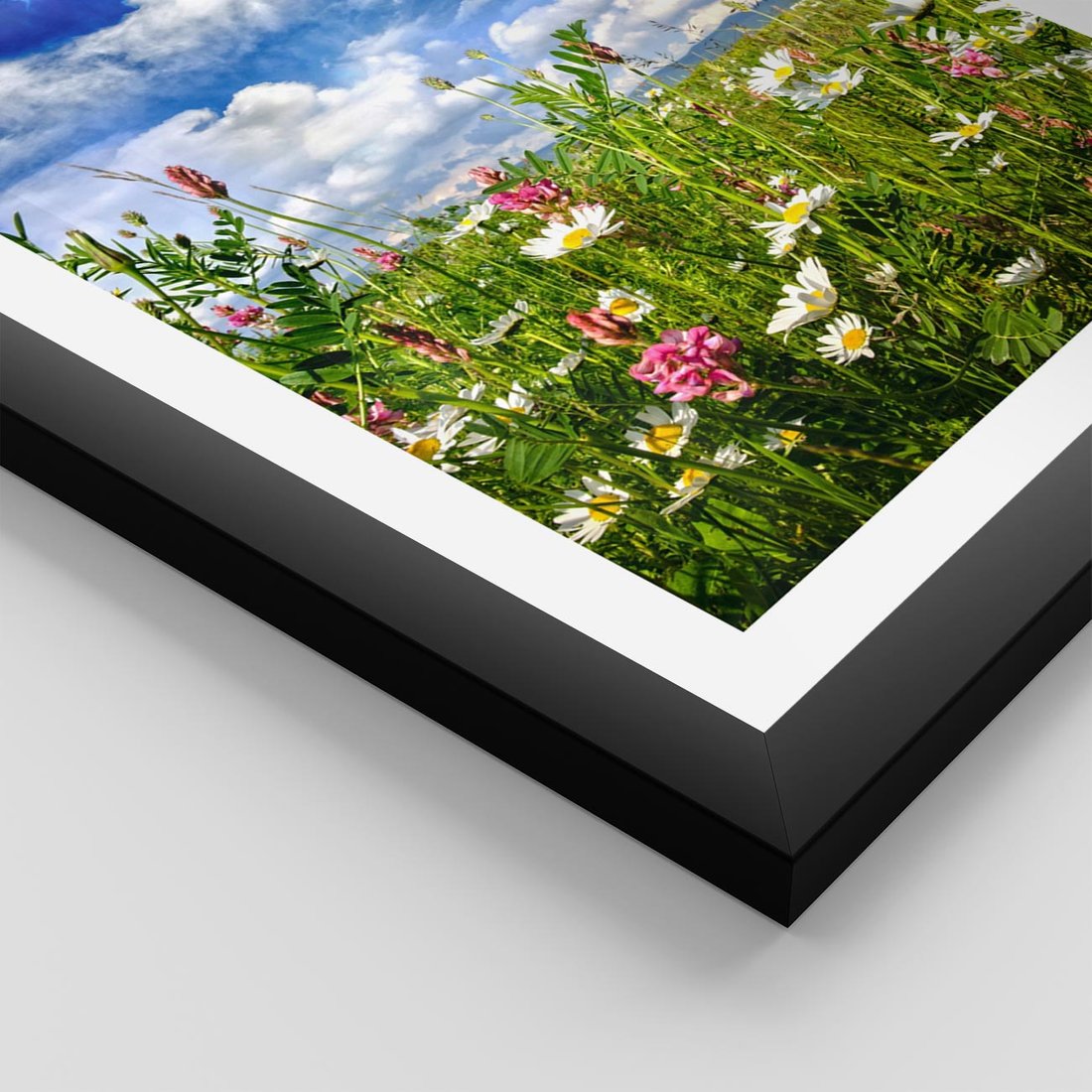 Plakat w ramie 50x70 - Niebiańska łąka pełna kwiatów - łąka, niebo - rama czarna