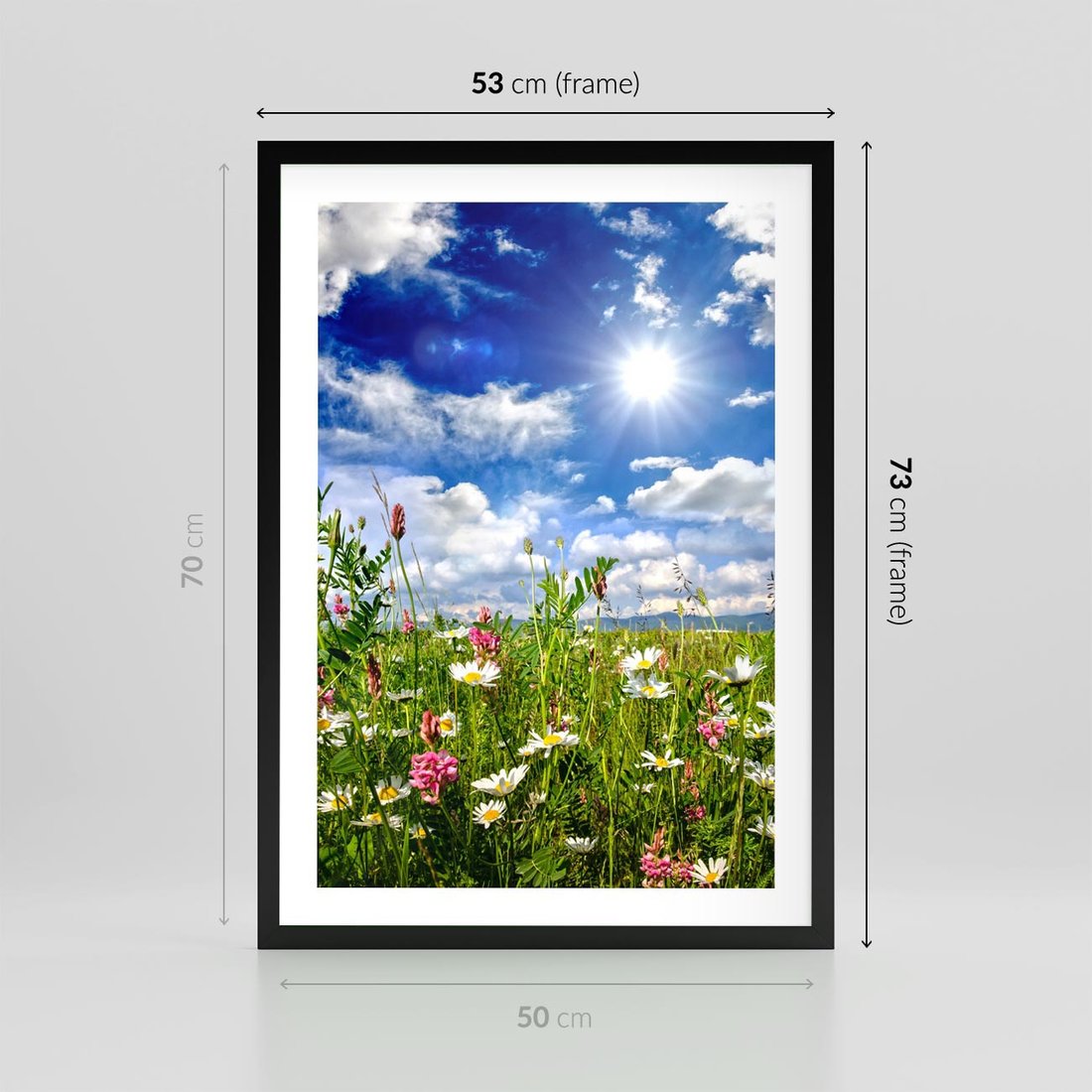 - Plakat w ramie 50x70 - Niebiańska łąka pełna kwiatów