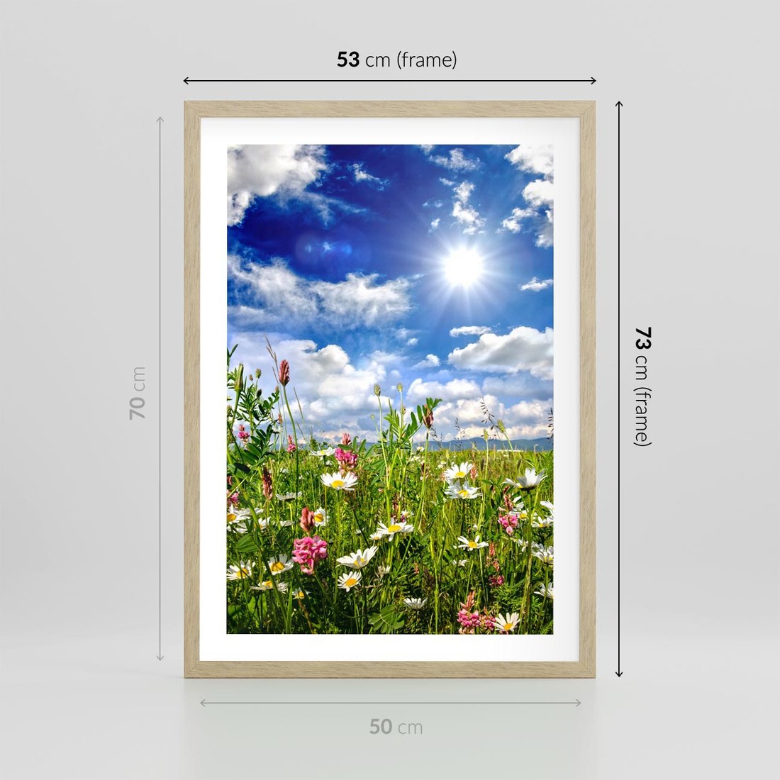 - Plakat w ramie 50x70 - Niebiańska łąka pełna kwiatów