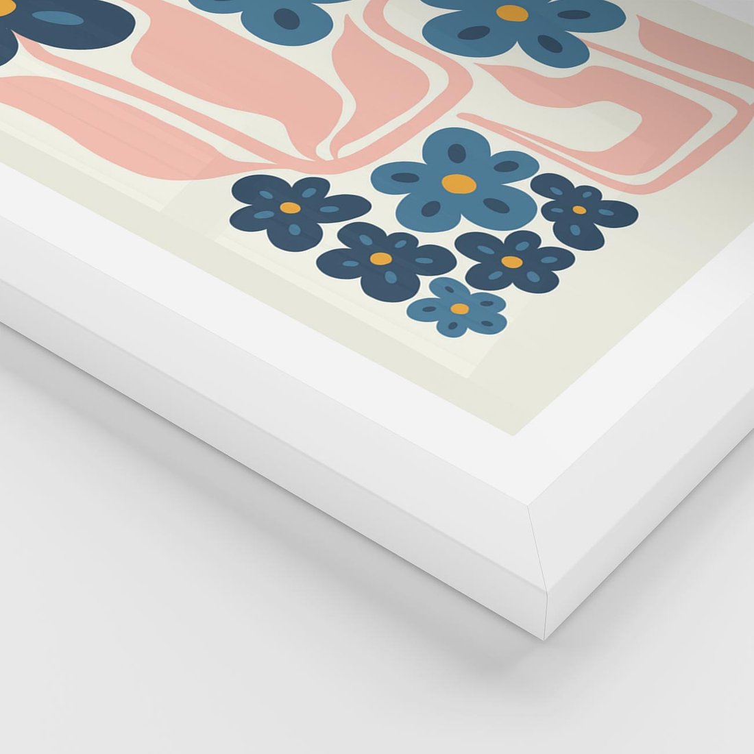 Ta nowoczesna abstrakcja łączy niebieskie kwiaty niezapominajki z delikatnymi pastelowymi odcieniami. Kompozycja zachęca do kontemplacji, wprowadzając spokój i harmonię do wnętrza.