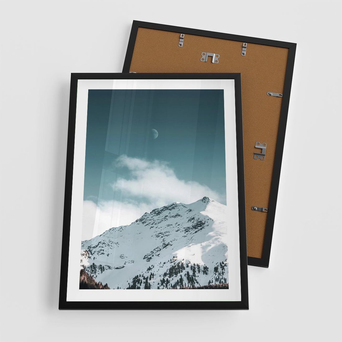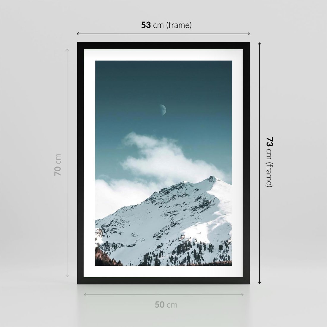 Plakat w ramie 50x70 - Nocna Magia w Górach - fotografia, śnieg - rama czarna