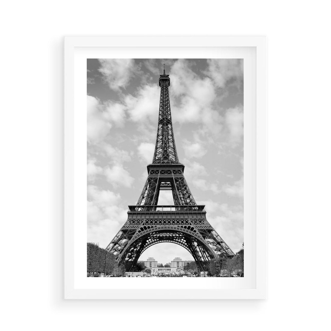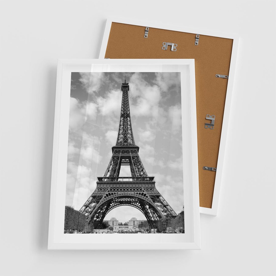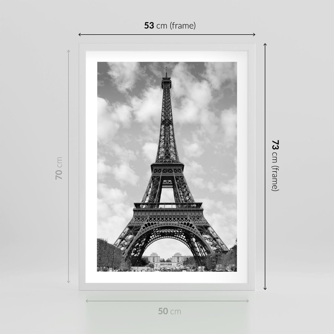 Plakat w ramie 50x70 - Nocna panorama Paryża z wieżą Eiffla - Eiffla, Paryż - rama biała