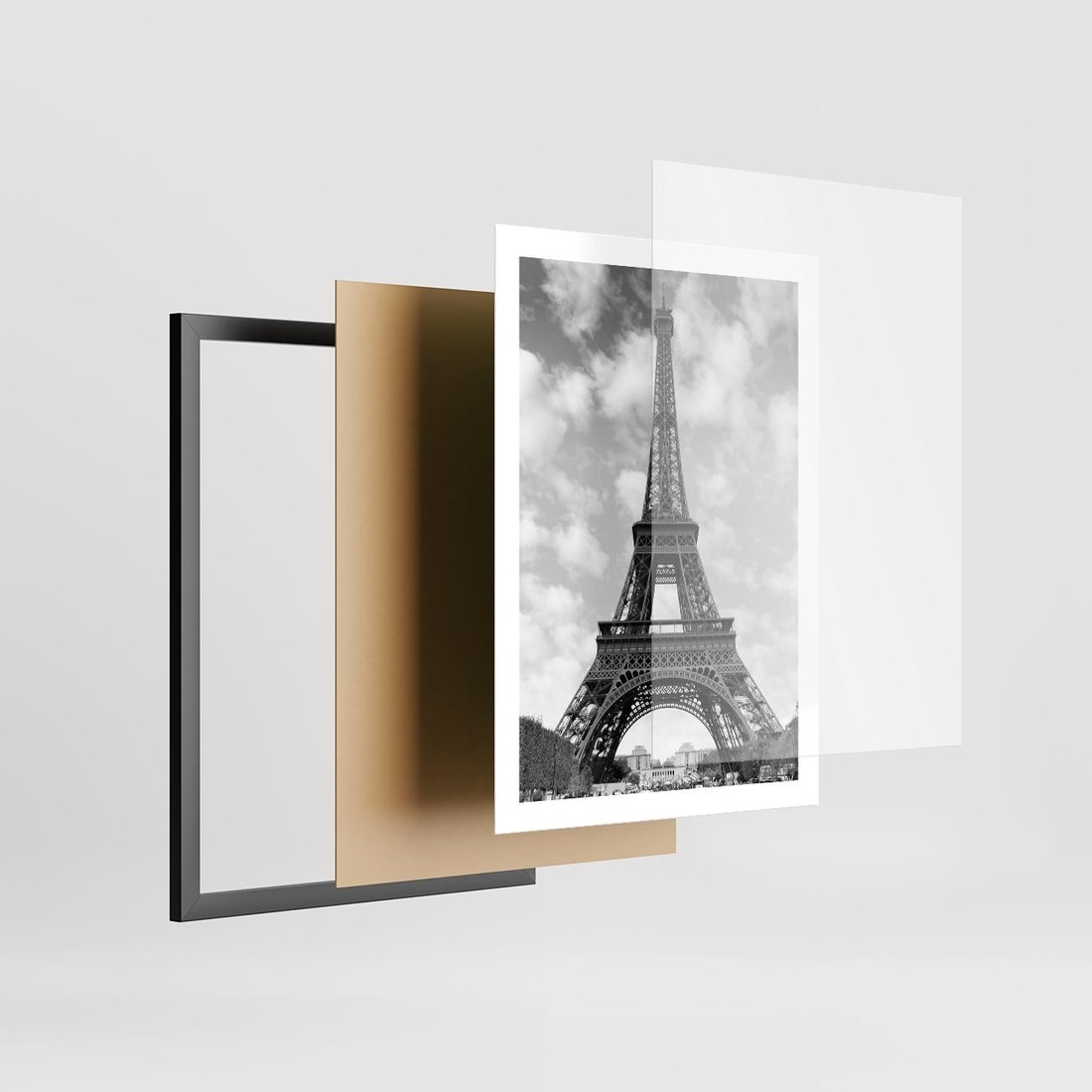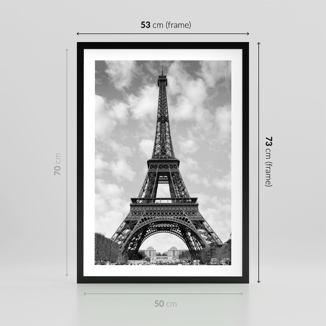 Plakat w ramie 50x70 - Nocna panorama Paryża z wieżą Eiffla - Eiffla, Paryż - rama czarna