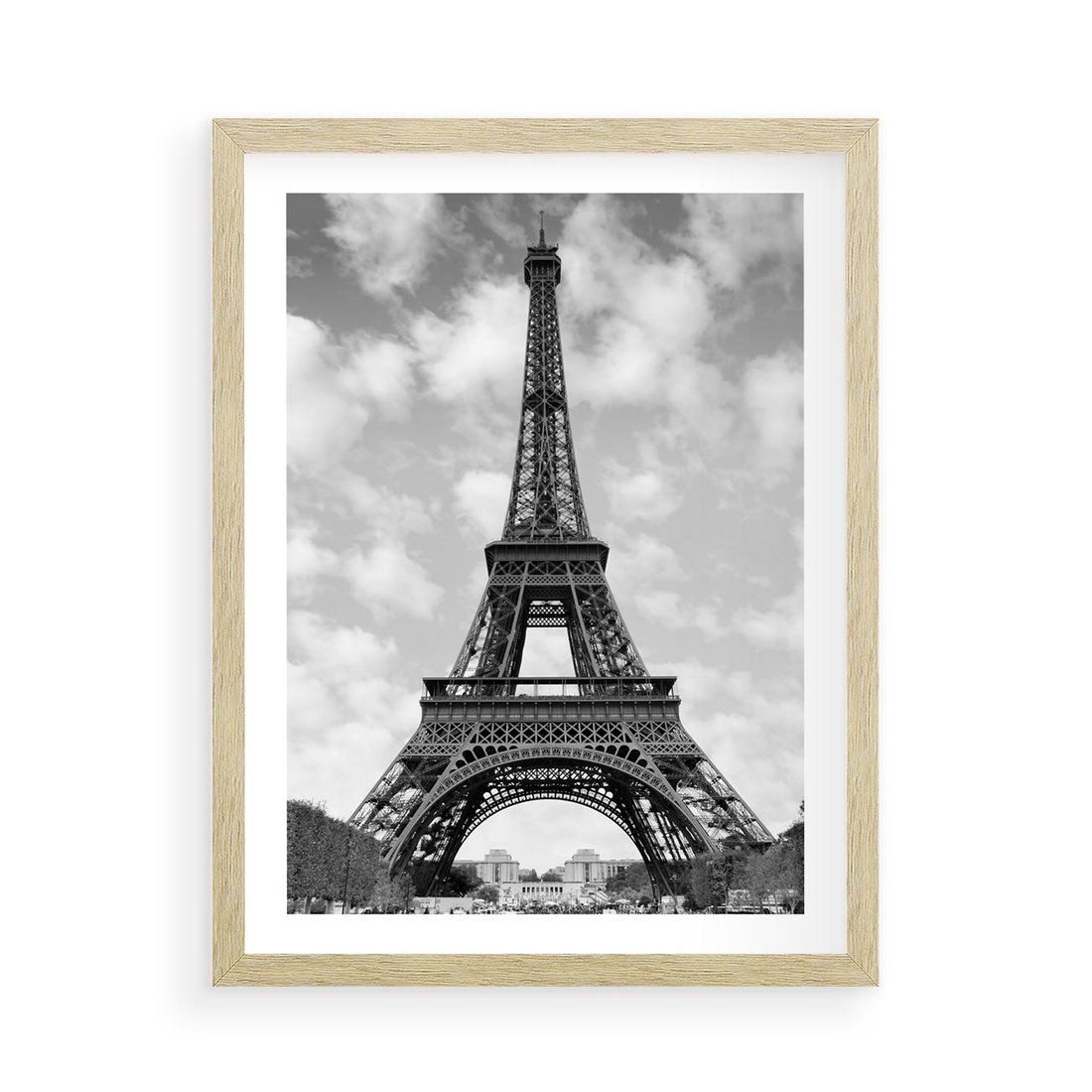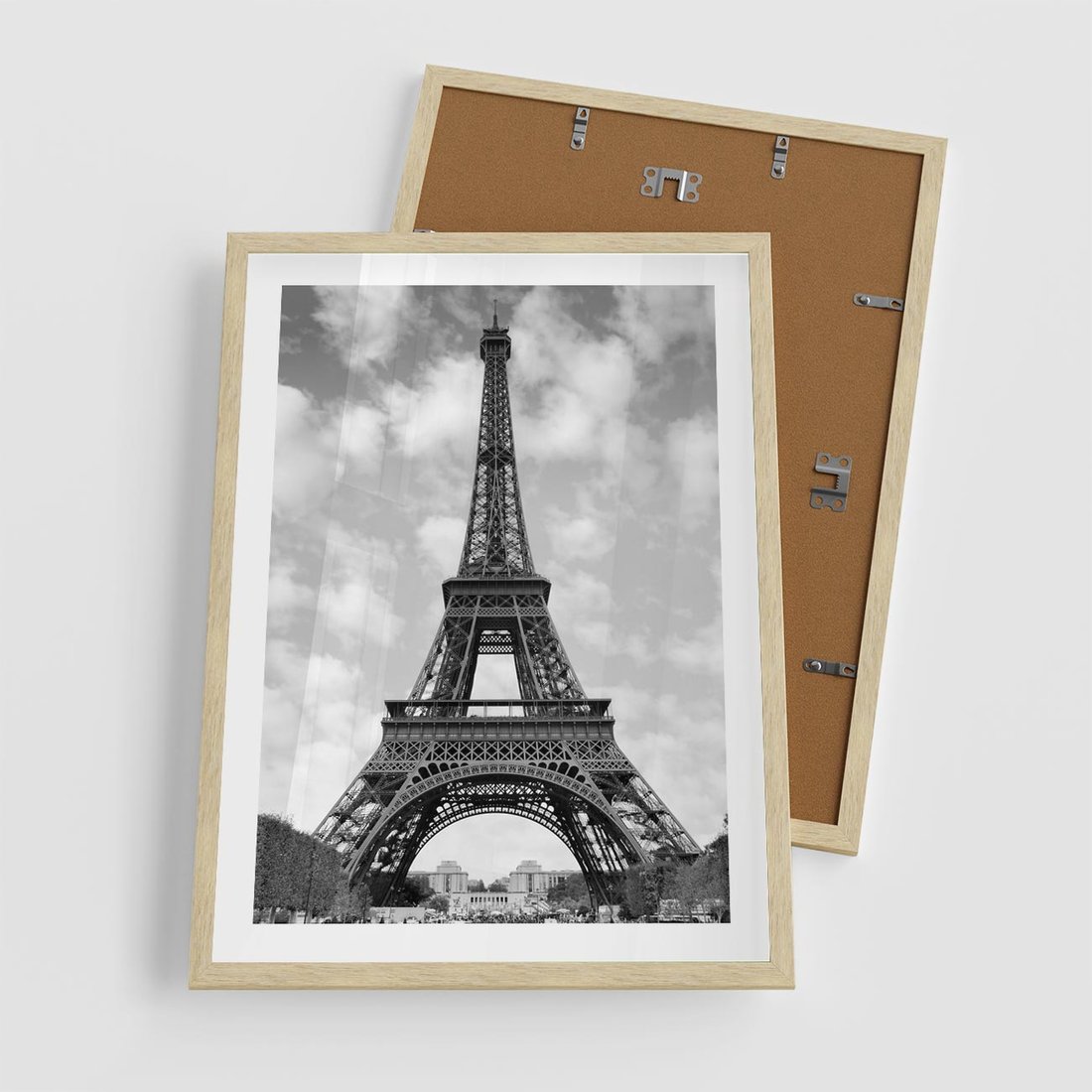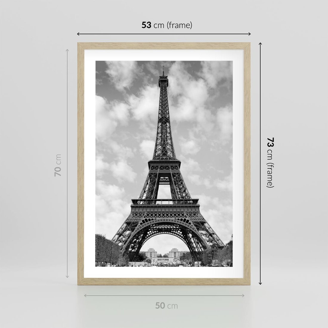 Plakat w ramie 50x70 - Nocna panorama Paryża z wieżą Eiffla - Eiffla, Paryż - rama drewno