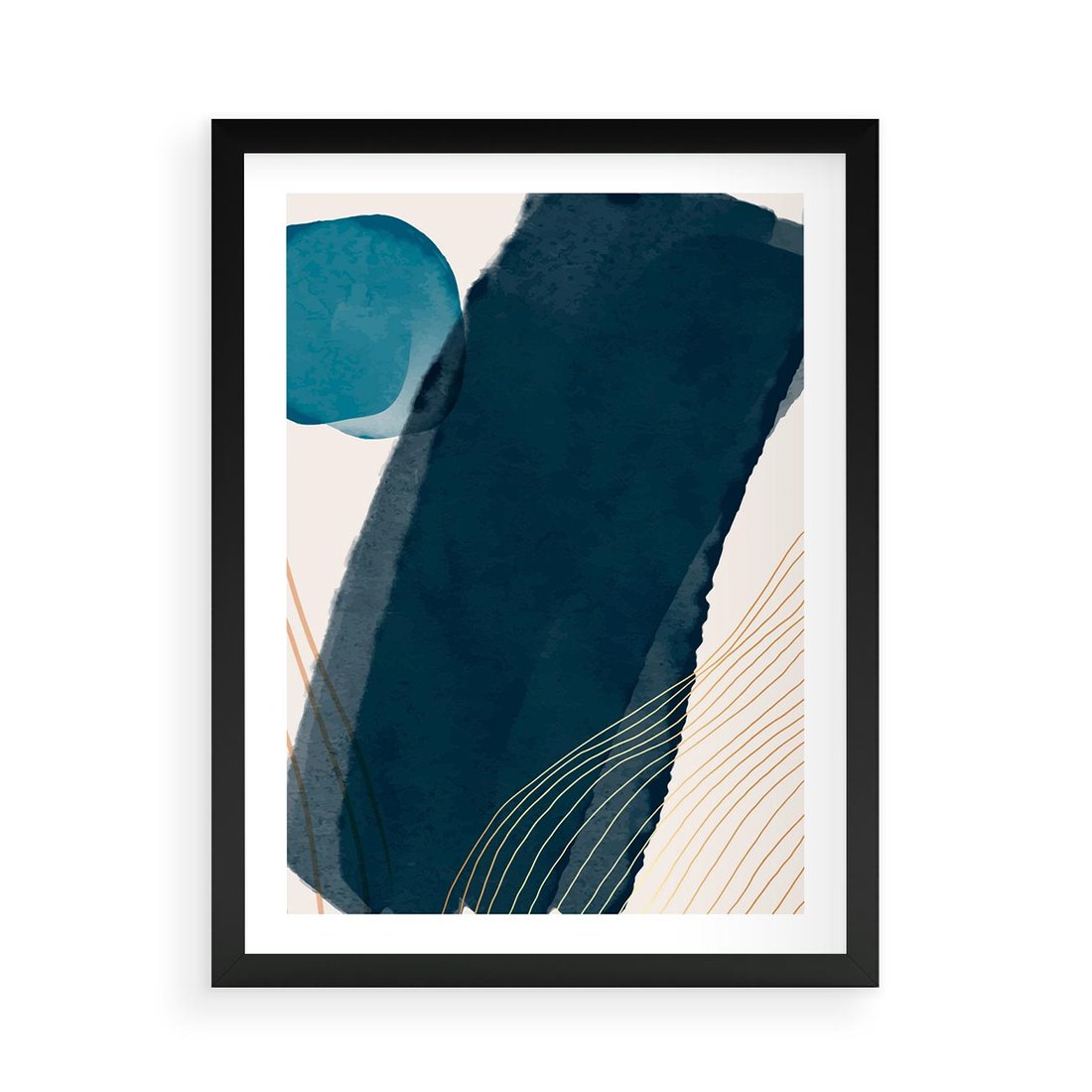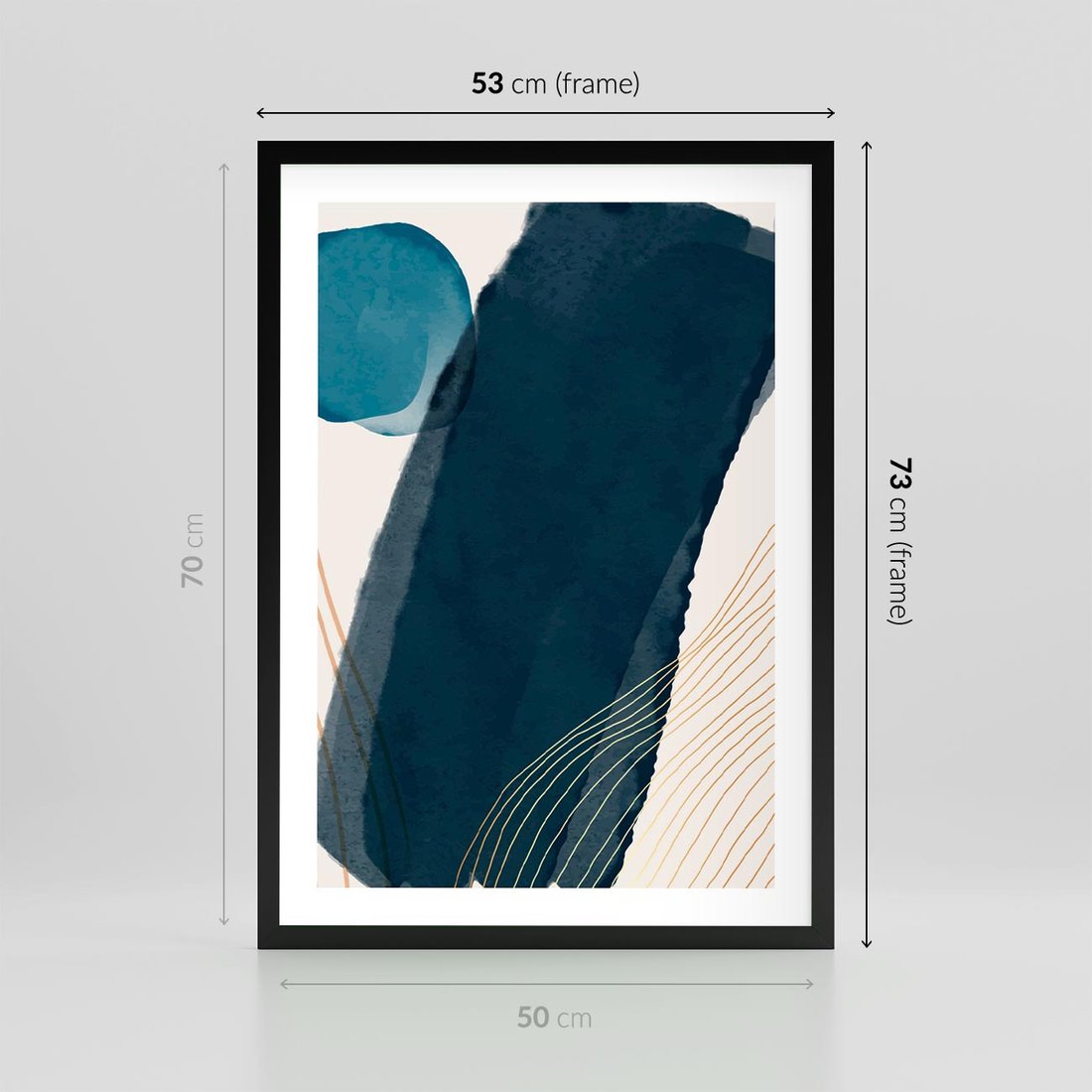 Plakat w ramie 50x70 - Nocne Widzenia - abstrakcyjna granatowa plama, akwarela - rama czarna