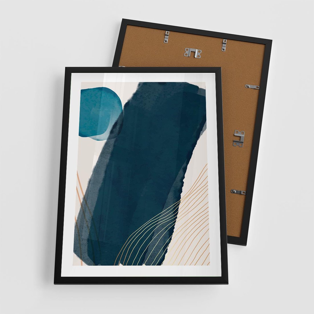 Nasz plakat to abstrakcyjna granatowa plama w technice akwareli, zdobiona złotymi elementami. To dzieło sztuki, które w dynamiczny sposób łączy głęboki kolor z subtelnym blaskiem złota, tworząc niezwykłą kompozycję o wyjątkowym wyrazie artystycznym.