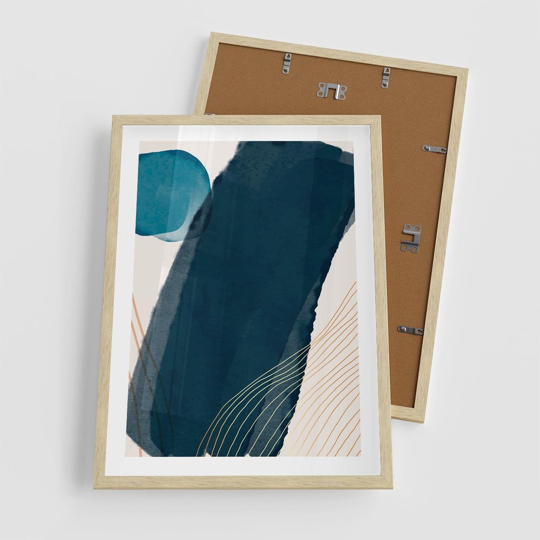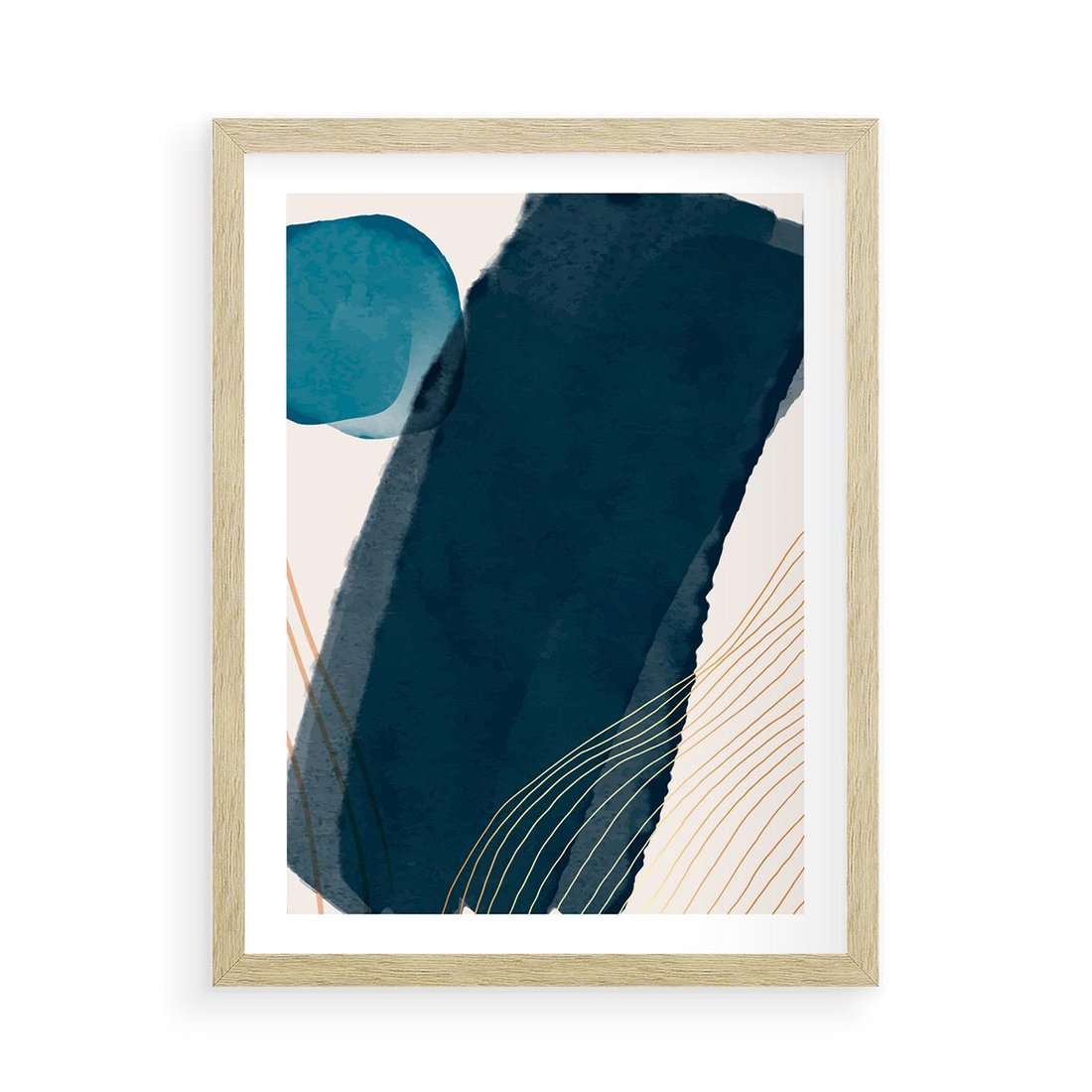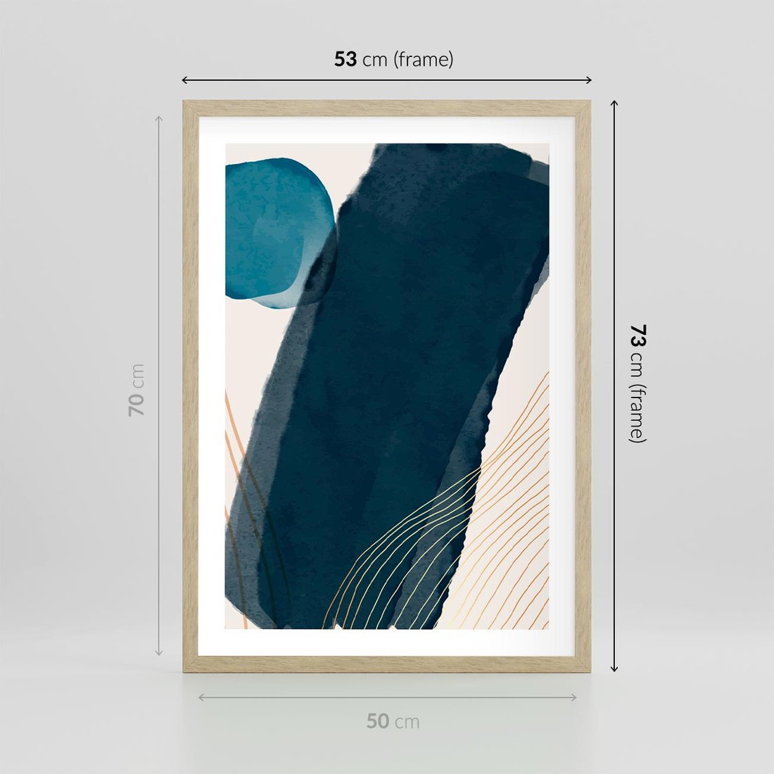 Plakat w ramie 50x70 - Nocne Widzenia - abstrakcyjna granatowa plama, akwarela - rama drewno