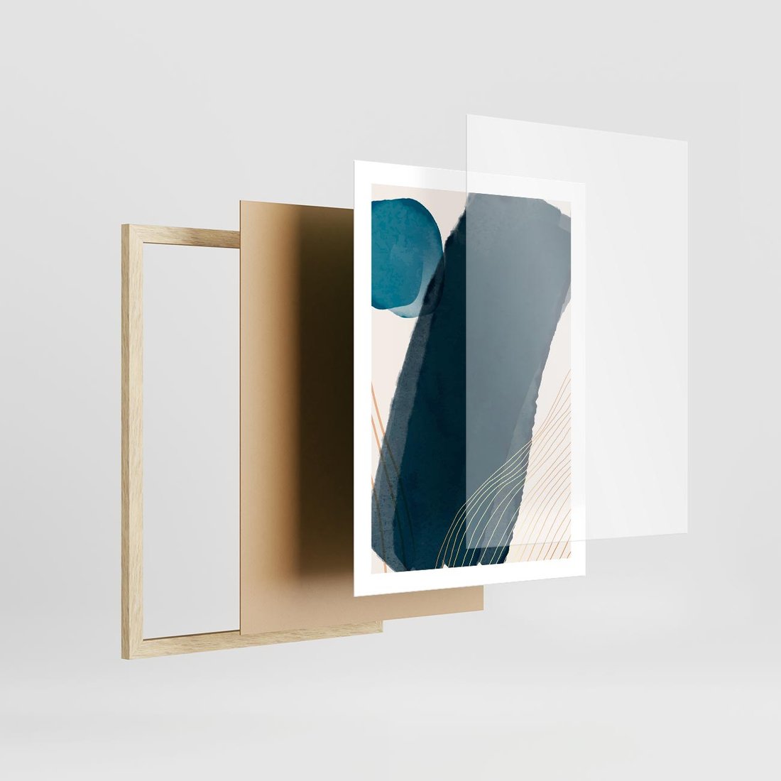 Nasz plakat to abstrakcyjna granatowa plama w technice akwareli, zdobiona złotymi elementami. To dzieło sztuki, które w dynamiczny sposób łączy głęboki kolor z subtelnym blaskiem złota, tworząc niezwykłą kompozycję o wyjątkowym wyrazie artystycznym.