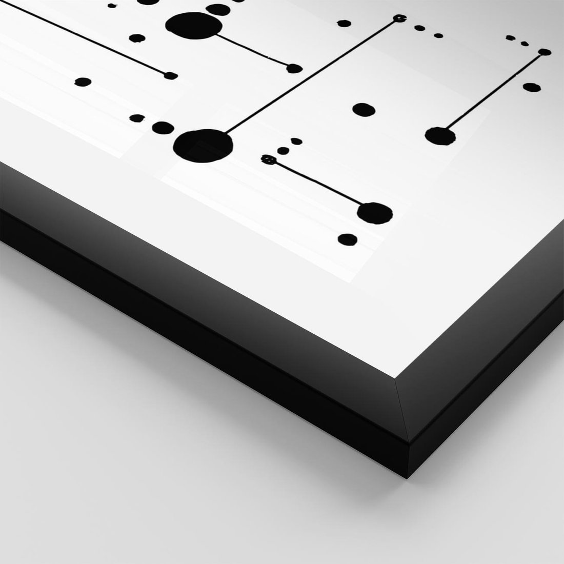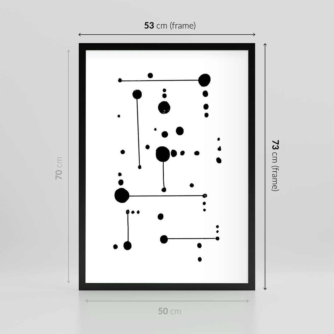 Plakat w ramie 50x70 - Nocne Zawirowania - abstrakcyjny plakat, czarne kropki i kreski - rama czarna