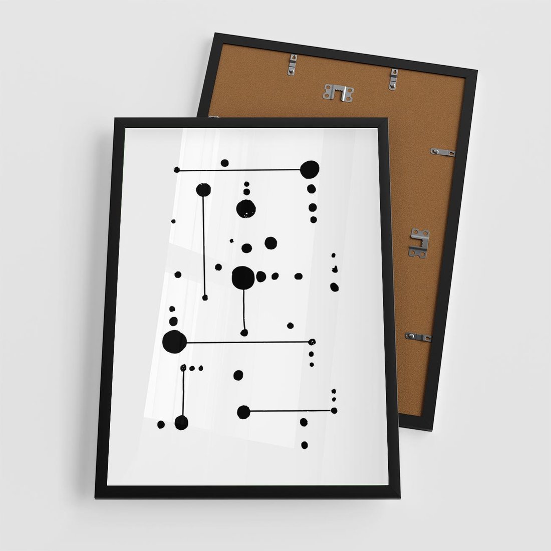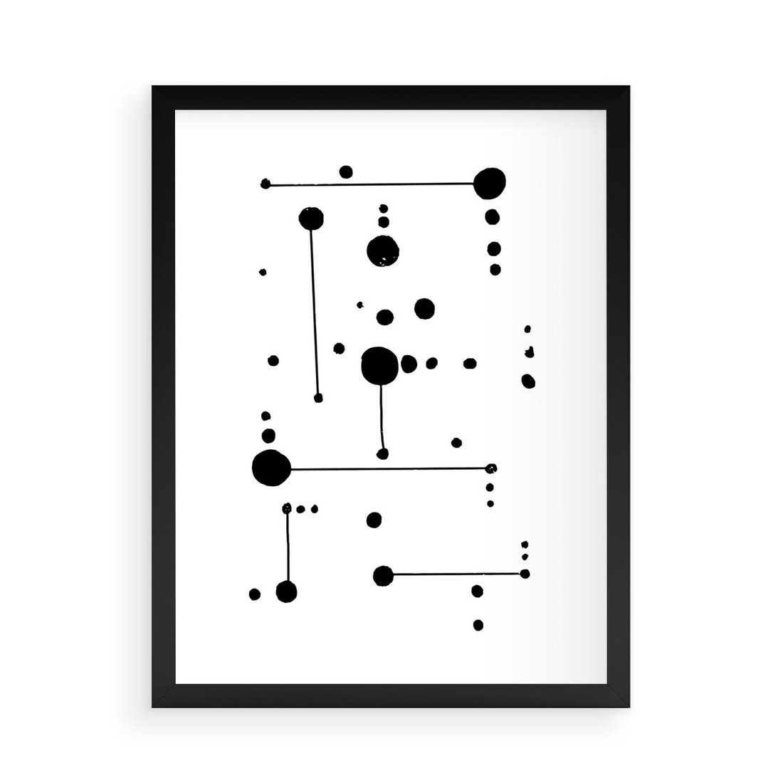 Nasz czarno-biały plakat to doskonałe połączenie abstrakcji i minimalizmu. Zastosowanie kropek i kresek tworzy fascynującą kompozycję, której wyrazistość wynika z kontrastu między czernią a bielą. Ten plakat jest hołdem dla prostoty i głębokich znaczeń, idealny dla miłośników artystycznej subtelności.